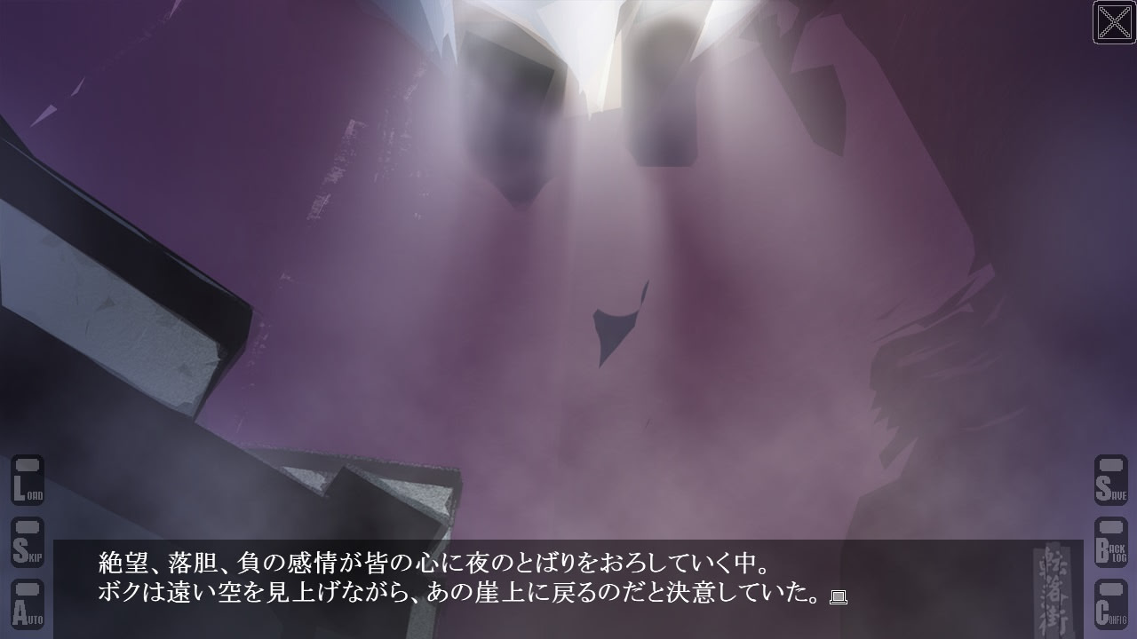 At the bottom of the crack, in an isolated town, the three ended up living with the survivors, men who happened to be staying in the town and that called themselves adventurers, and the townspeople who originally lived in the town.
