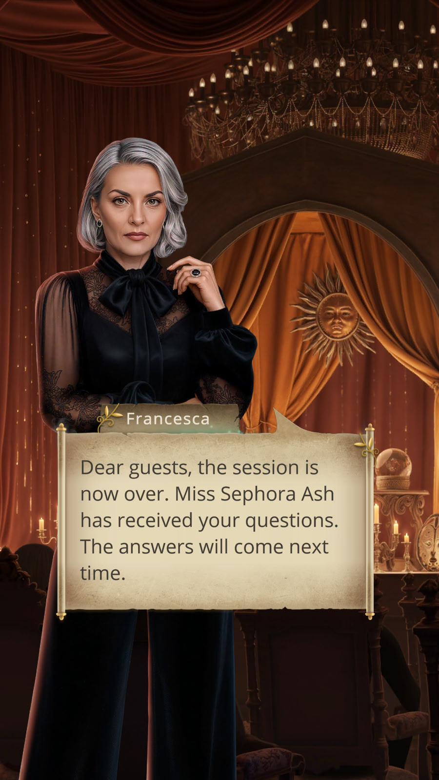 Every evening, she reads her unfinished movie script to her Messire.