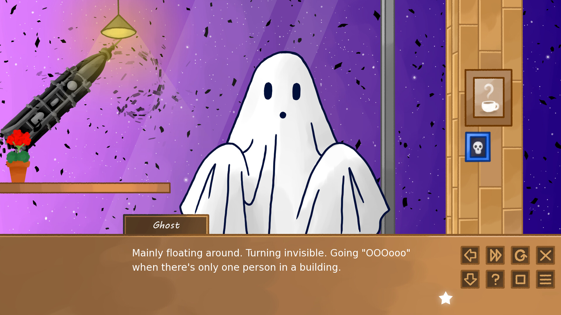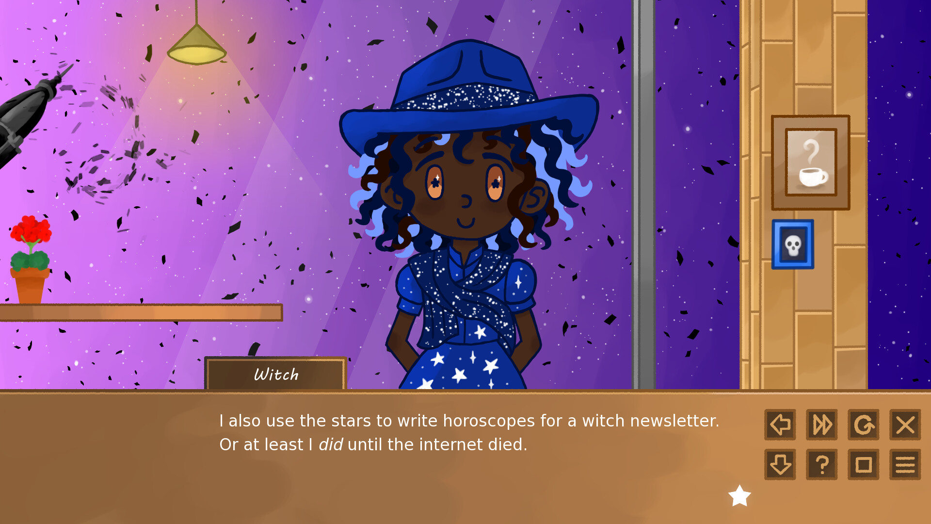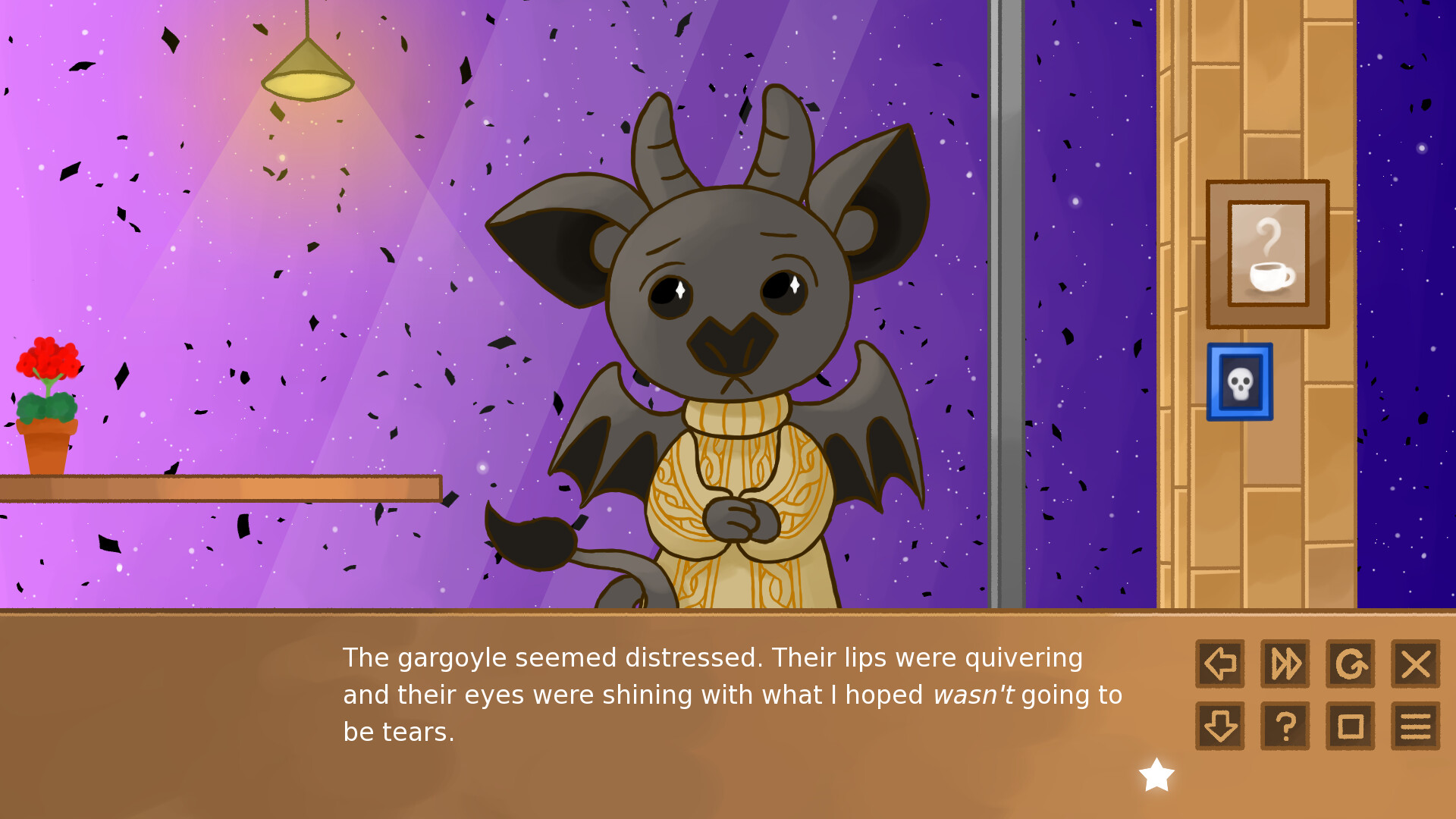 In a fantasy world where Halloween-themed monsters and witches are commonplace, the Universe is about to come to an end. A grim reaper is tasked with working at a cafe run by Death himself, serving patrons with a meal that recreates that person's most precious memory. itch.io]