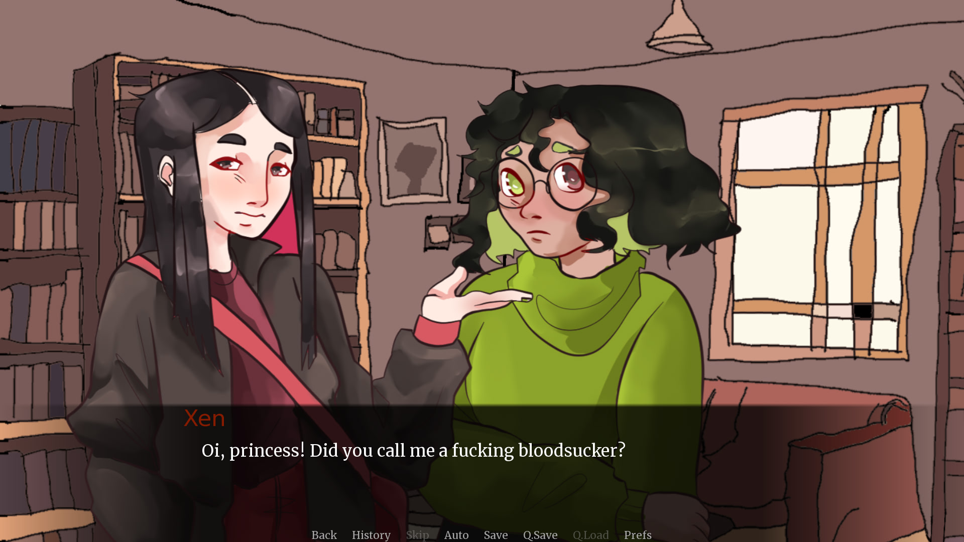 The shy werewolf lady Ida of the Bloodhounds enjoys the quiet of her apartment and the cuddles of her outgoing human girlfriend, Xen Lovebird, a descendant from an ancient lineage of monster hunters.