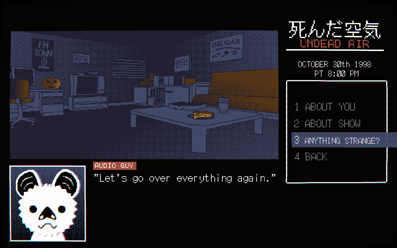 Your radio show has gotten quite popular. By reporting on strange urban legends, conspiracies and scary stories, it has developed a cult following of fans, who regularly call on air to tell their delusions and stories.
