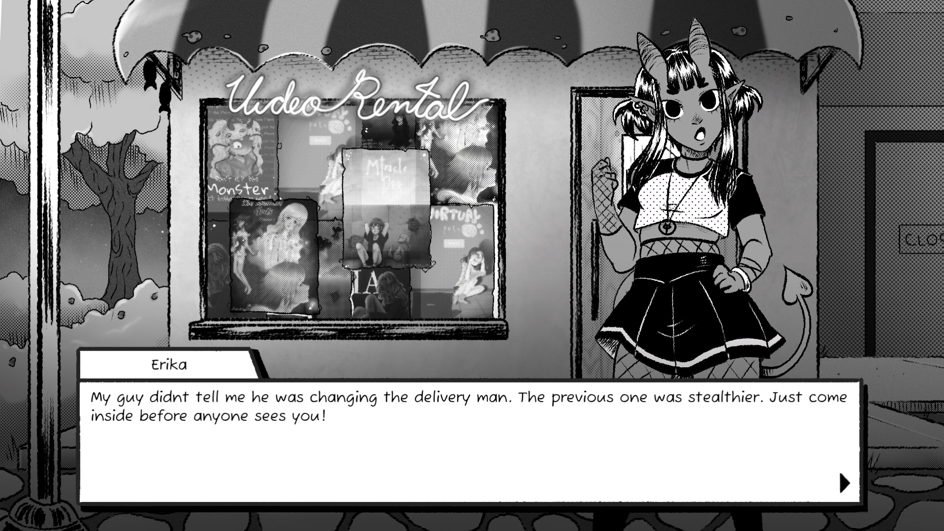 You just wanted to rent some dvd’s and ended up stranded in another world full of MONSTERS! Try to find your way back home while meeting some very curious, possibly undiagnosed neurodivergent but very cute monster girls who might help you (if they feel like it).
