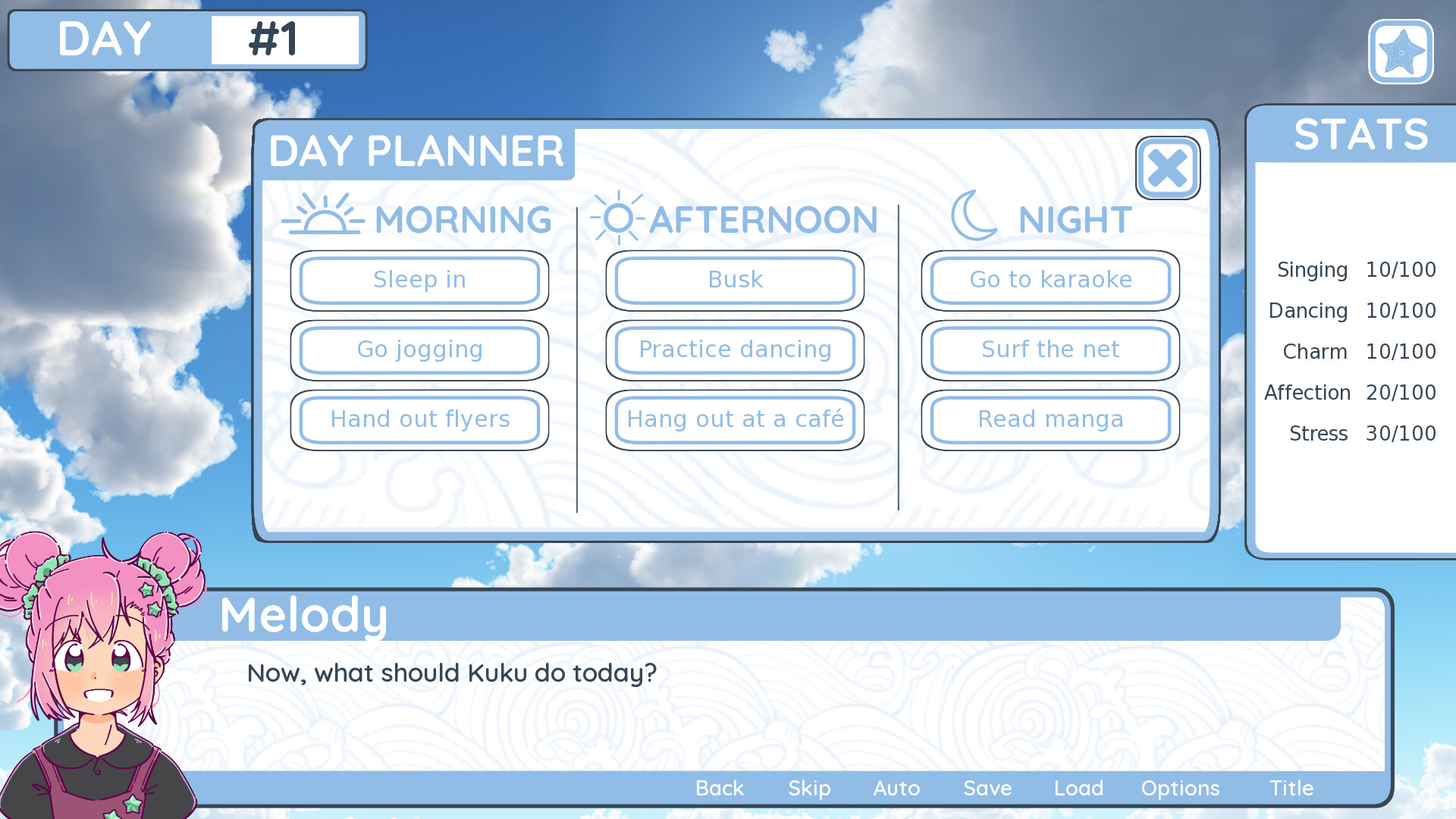 Determined to revitalize her cult and regain a brand new slew of worshippers, Kuku comes up with a masterful plan: namely, that she'll become an adorable idol and conquer the world through her singing, her dancing, and her charm! Work with Kuku as her producer to manage her schedule, raise her stats, and make decisions that will shape the trajectory of her career. Don't let her get too stressed, though: otherwise, the world might come to a watery end.