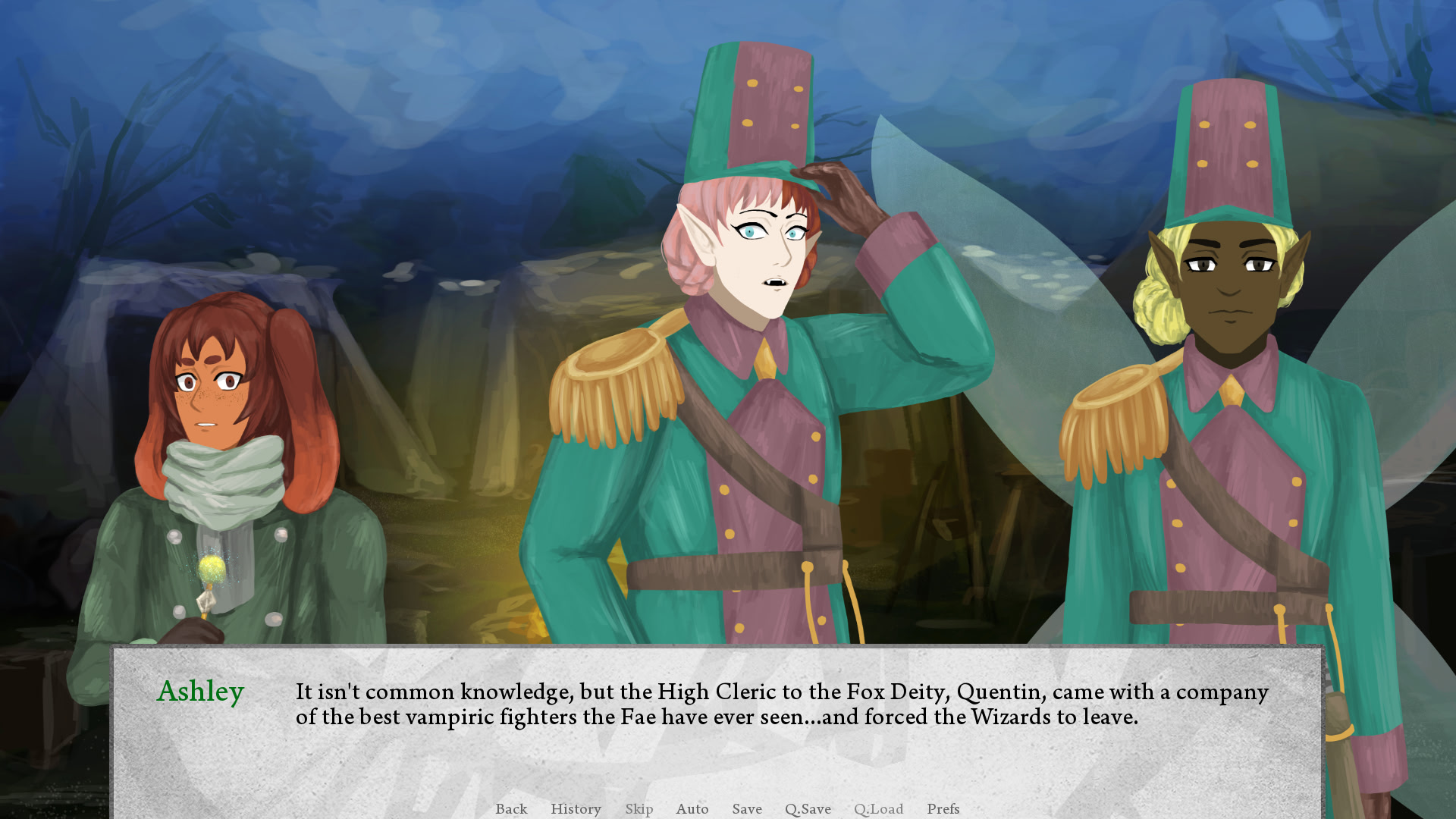Fae Captain Ashley and Vampire Captain Klaus find themselves in a long and bitter war and are supposedly sworn enemies. Both is given the task to kill the other, but will either of them be able to carry out their patriotic duty? Take control of each character and remember, your decisions will be the difference between life and death!