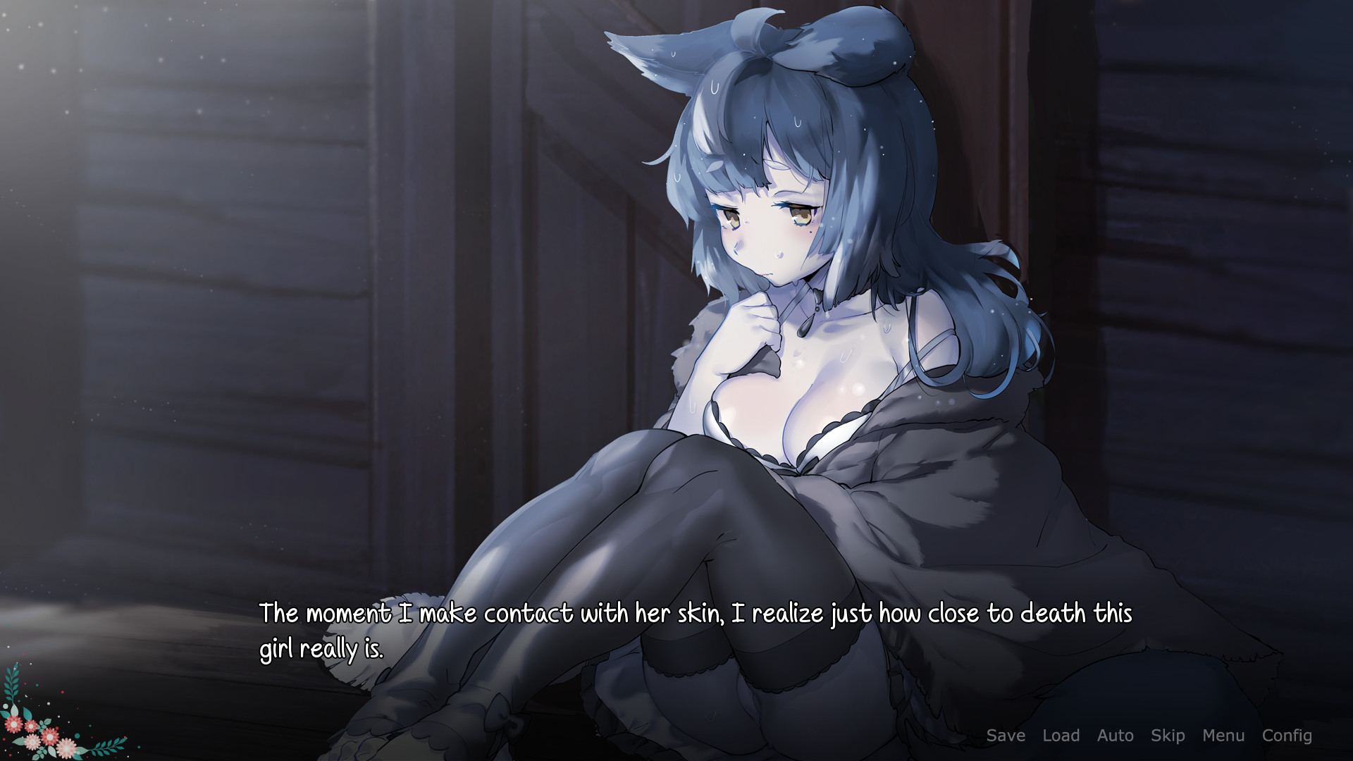 Moving far away from civilization, you hoped to live a life of solitude in a snowy cabin. Just as you begin to adapt to your peaceful new life, you discover an intruder; a wolf-girl, alone and shivering in your storeroom. Fearful for her life, you take the girl in for the night, offering her a place to stay until she recovers.