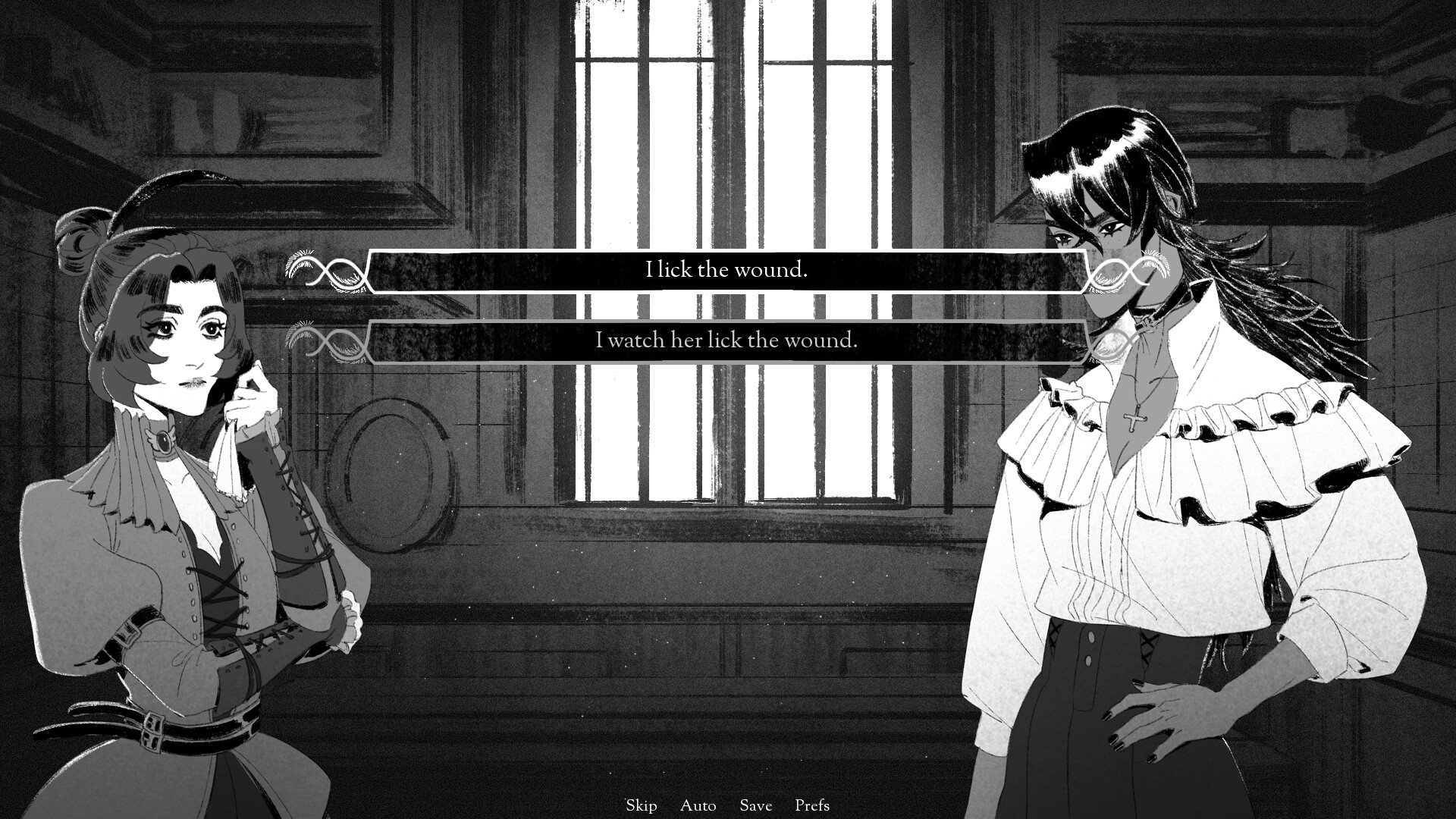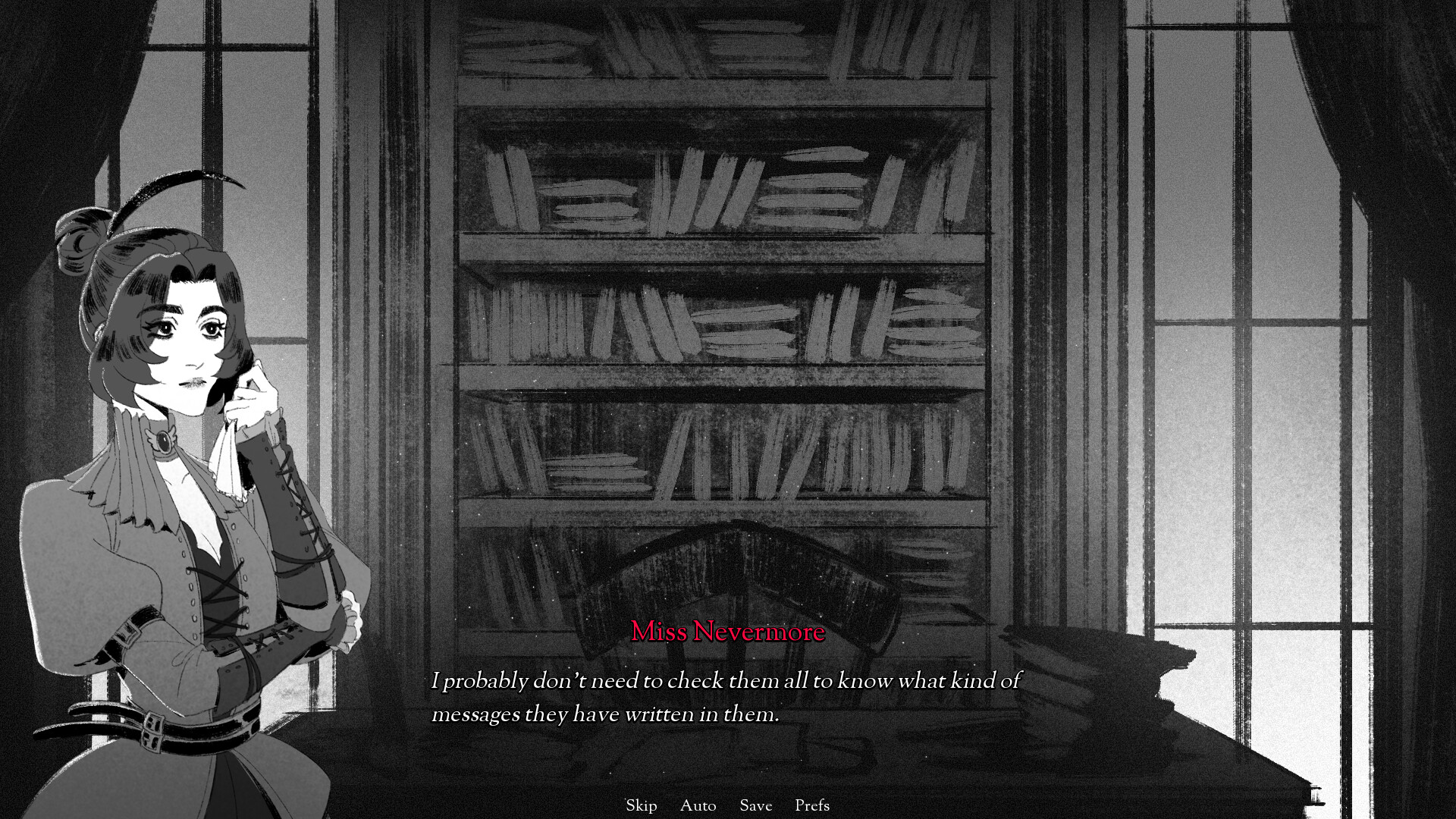 Miss Nevermore arrives at the country estate of a family friend. Summer has begun to bleed out at the hands of fall, and the city has been buzzing since the hottest of days, about the affairs of house Noblesse. Apparently one of their children has gone missing. They had run away to be with their darling, leaving the next eldest to carry on the burden of their family name. Miss Nevermore has heard the whispers from behind closed doors, however. And rumour has it… That the truth is far more malicious below the neatly smoothed out surface.