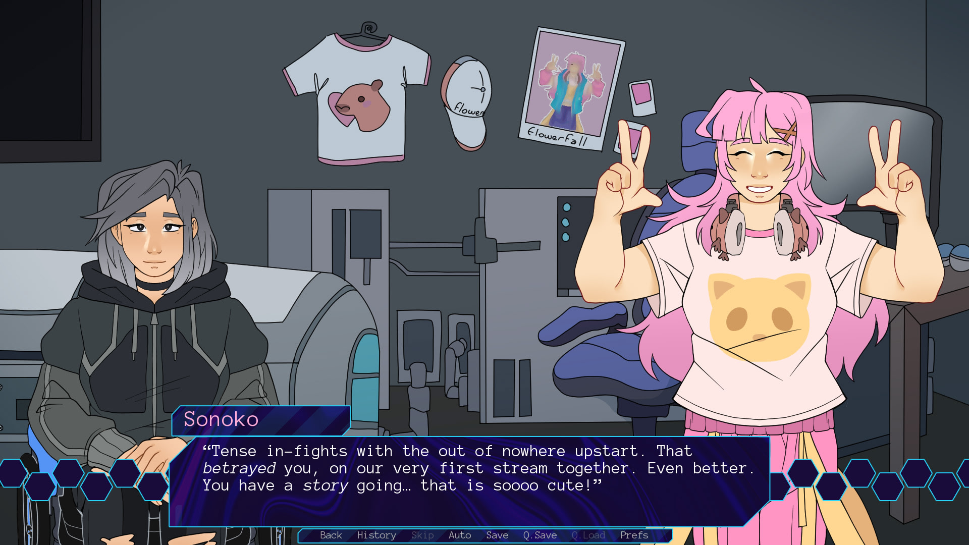 You're Ikuyo, an up-and-coming FPS gamer on the world's biggest video & streaming platform: Eidolon. Your sister Sonoko is the Eidolon goddess @flowerfall: loved by millions for her modelling, self-care, and genuine authenticity. And she's just been cancelled. Ikuyo struggles to reach her sister a...