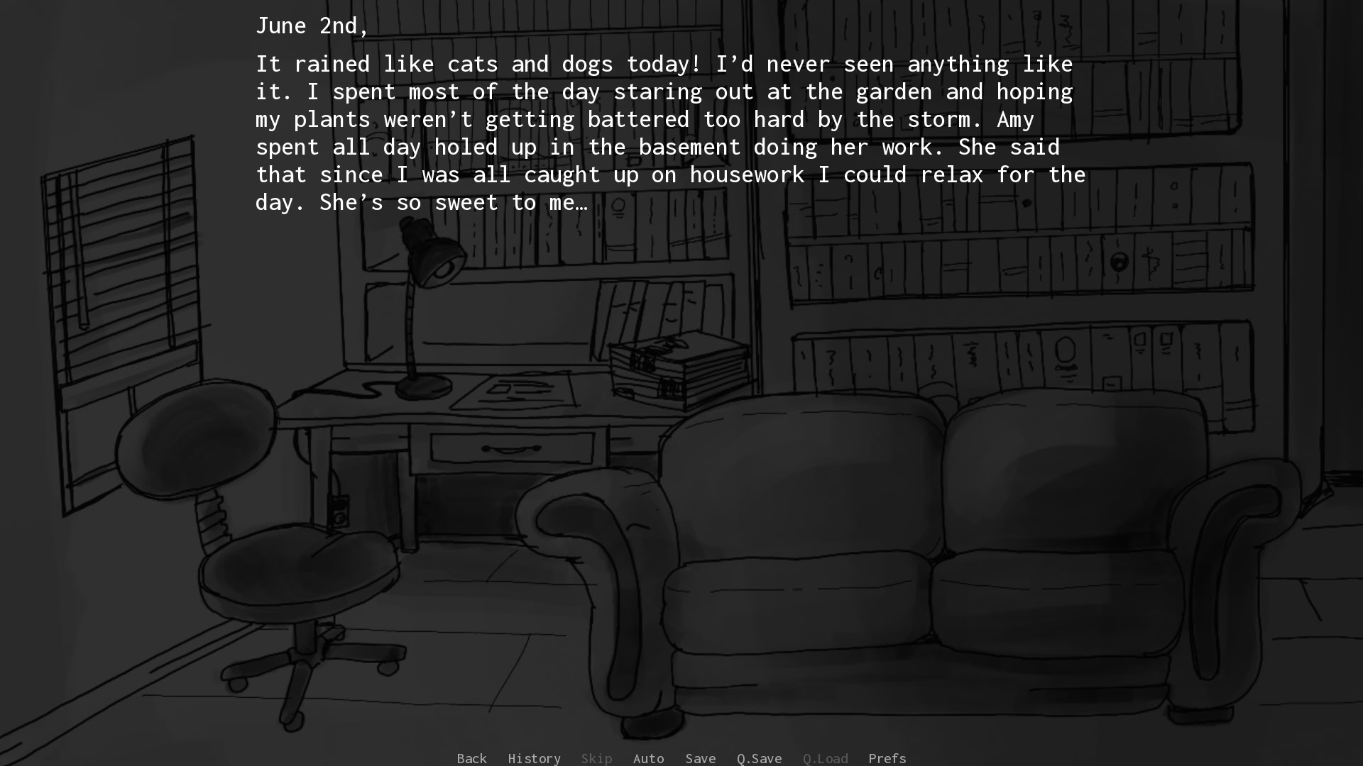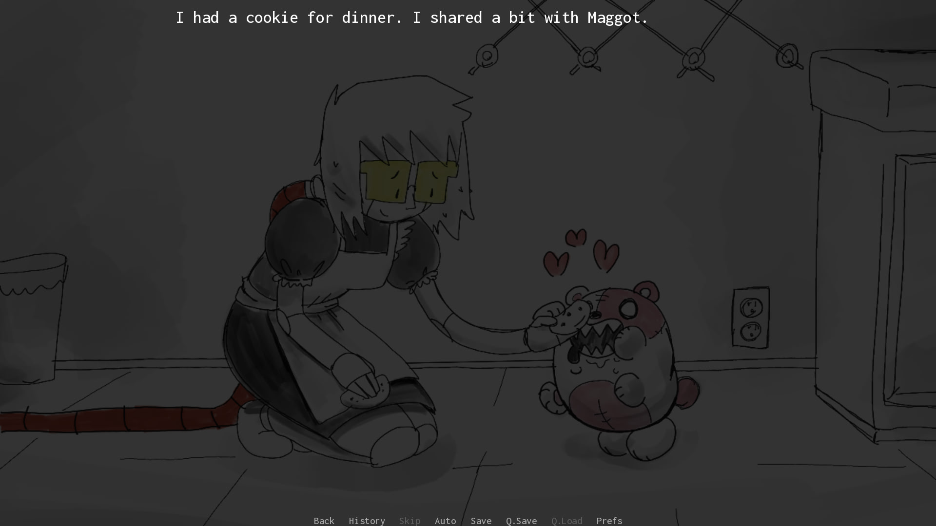 Absolutely Perfect Specimen is a horror-yuri visual novel about the android maid Pan and her master Dr. Amy G Dala. Follow Pan over the course of a year as she struggles with insatiable hunger and bizarre dysphoria, all while discovering her past and grappling with her dark future.