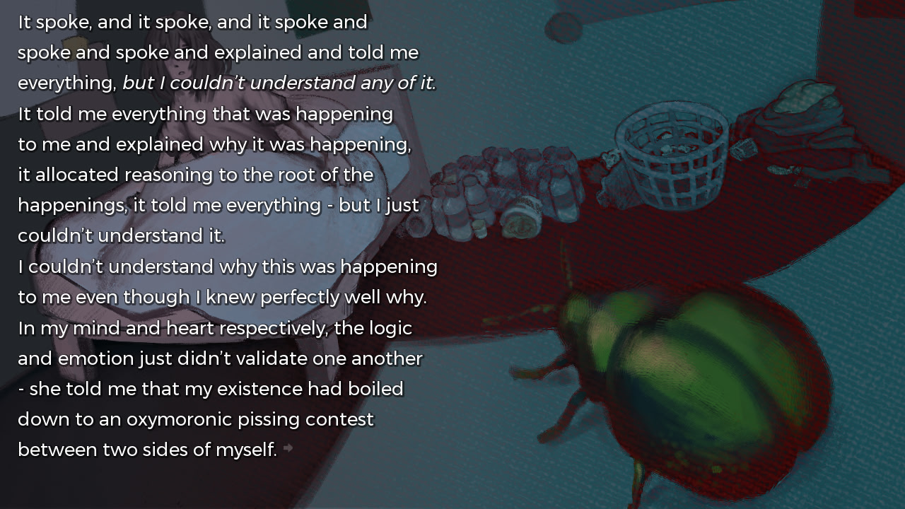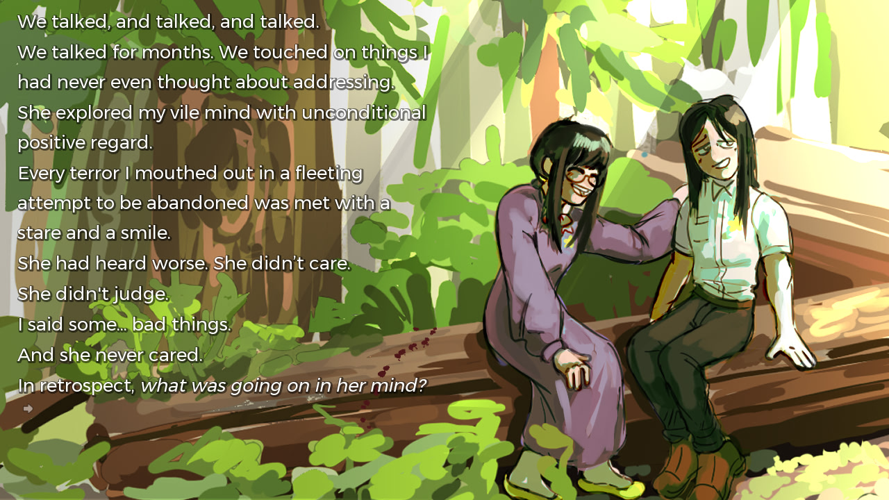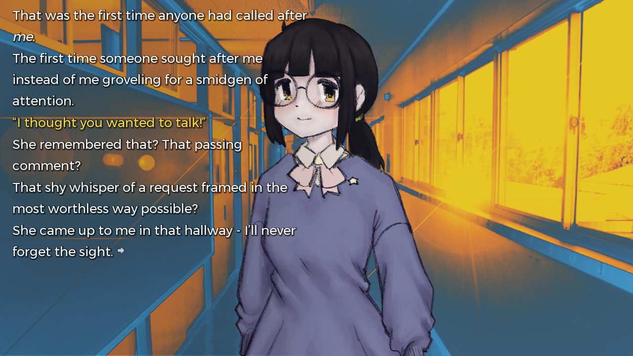 A lonely and depressed hikikomori grapples with their existence and transgender identity in a world where delusion begins to intertwine with reality. What once was good is now lost and all that's left is memory- but how reliable is your memory? itch.io]