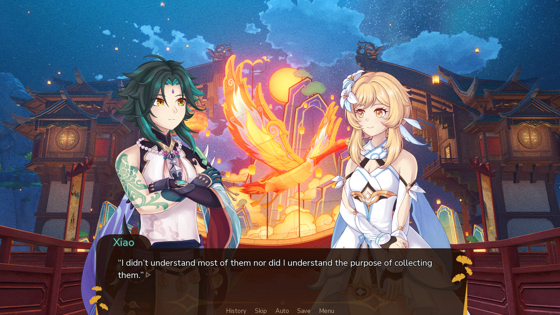 Yet this is not only for her sake. Without ever asking for anything in return, Xiao always offers everything he has. He, too, deserves a moment of peace which Lumine is ever so willing to provide.