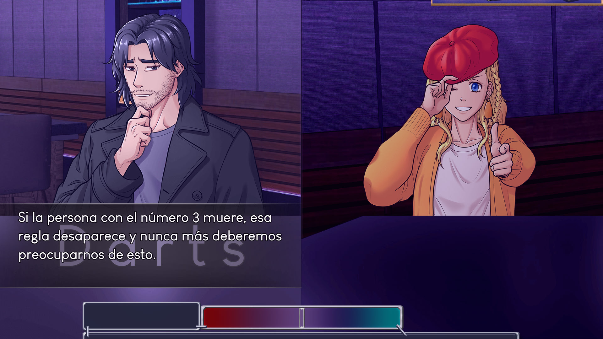 A death game of 10 rules assigned to each of the 10 players, a mysterious bar, and 10 hours to live. You can only disobey your own rule. If you die, your rule is removed from the game, until only 3 remain. An evolving game that changes with every death.
