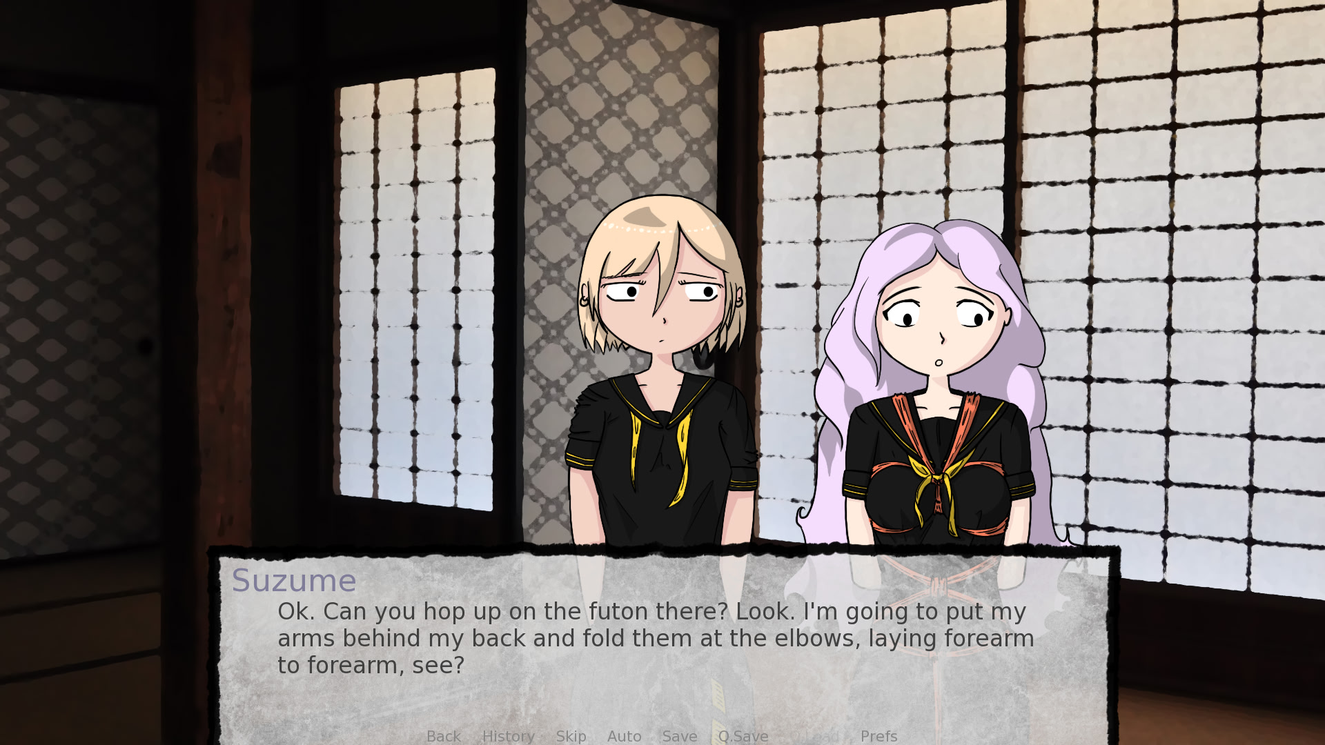 Suzume and Hachi flirt, fret, and frantically self-aware their way through being friends+ in moody Kyoto late spring weather. Itch.io]