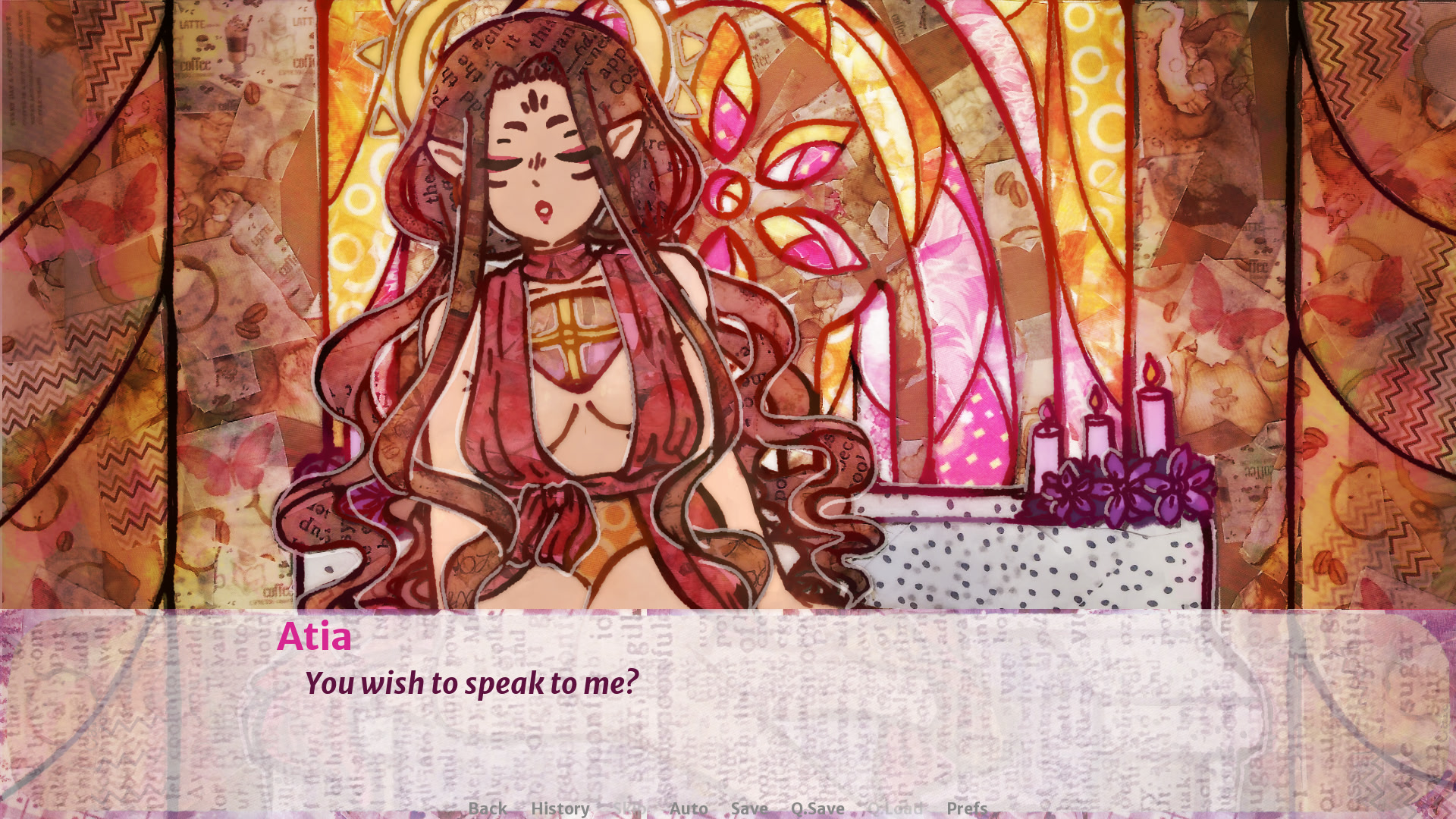 "You enter a temple to get a goddess' advice." Time to ask a goddess for dating advice!! itch.io]