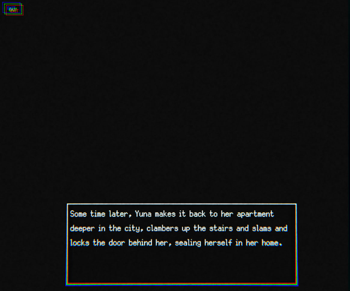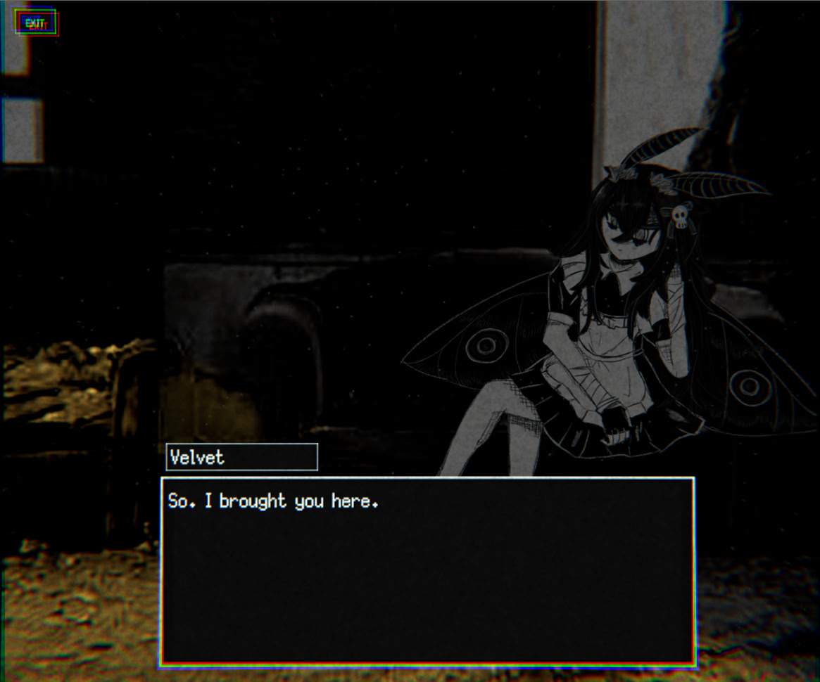 Yuna wakes up a couch in a dilapidated building lying across from a beautiful moth woman. What does she want? itch.io]