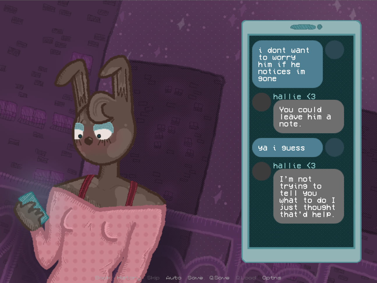 Lindsey Henson messages her field partner Hallie Macleod for some comfort and a distraction during a particularly shitty night. Itch.io]