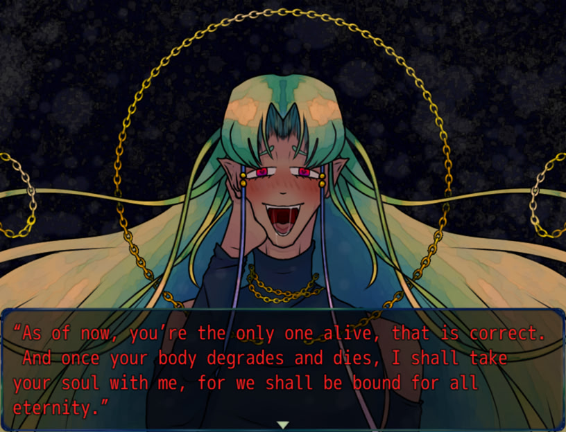 You wake up in a void, you feel as if you're almost floating... A man is with you, he is a God, and you're the only human left alive with him. itch.io]