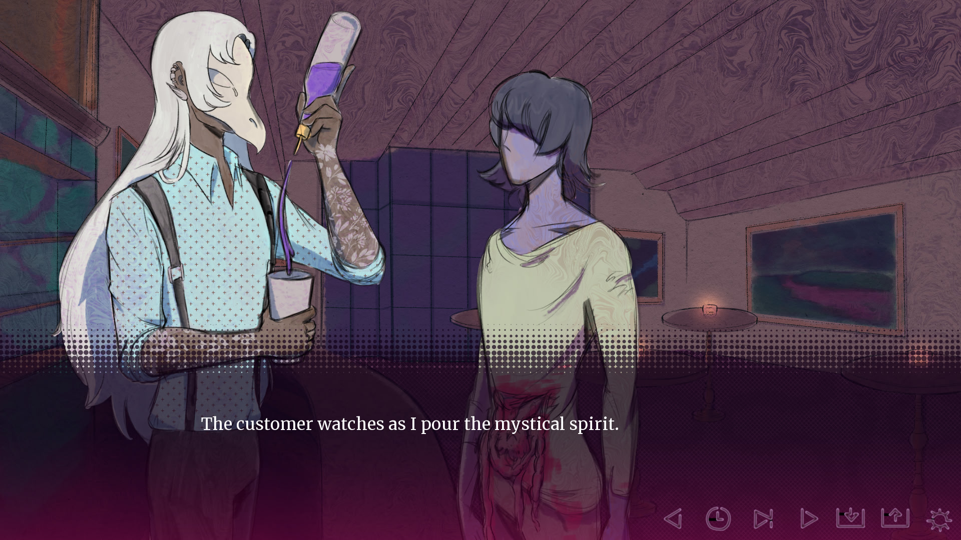 There are precious few pleasures for those living in Limbo. Sampling the otherworldly flavors served in Spirits of Limbo, the only establishment of its kind in the realm, is one of them. Lial, the bartender, is only too happy to cater to that demand. However, the arrival of a new customer shrouded in mystery disrupts their routine of mixing drinks and befriending clientele..