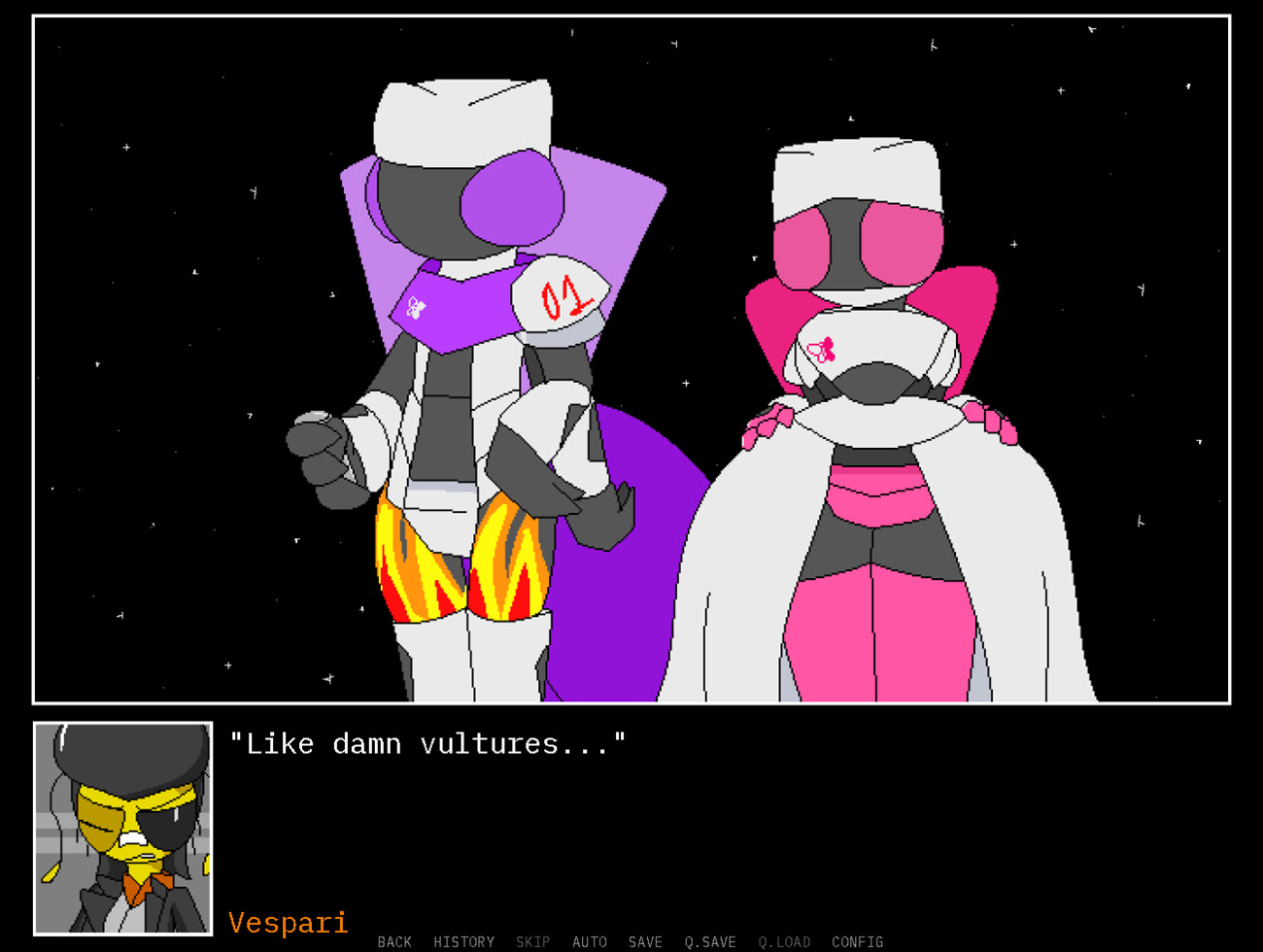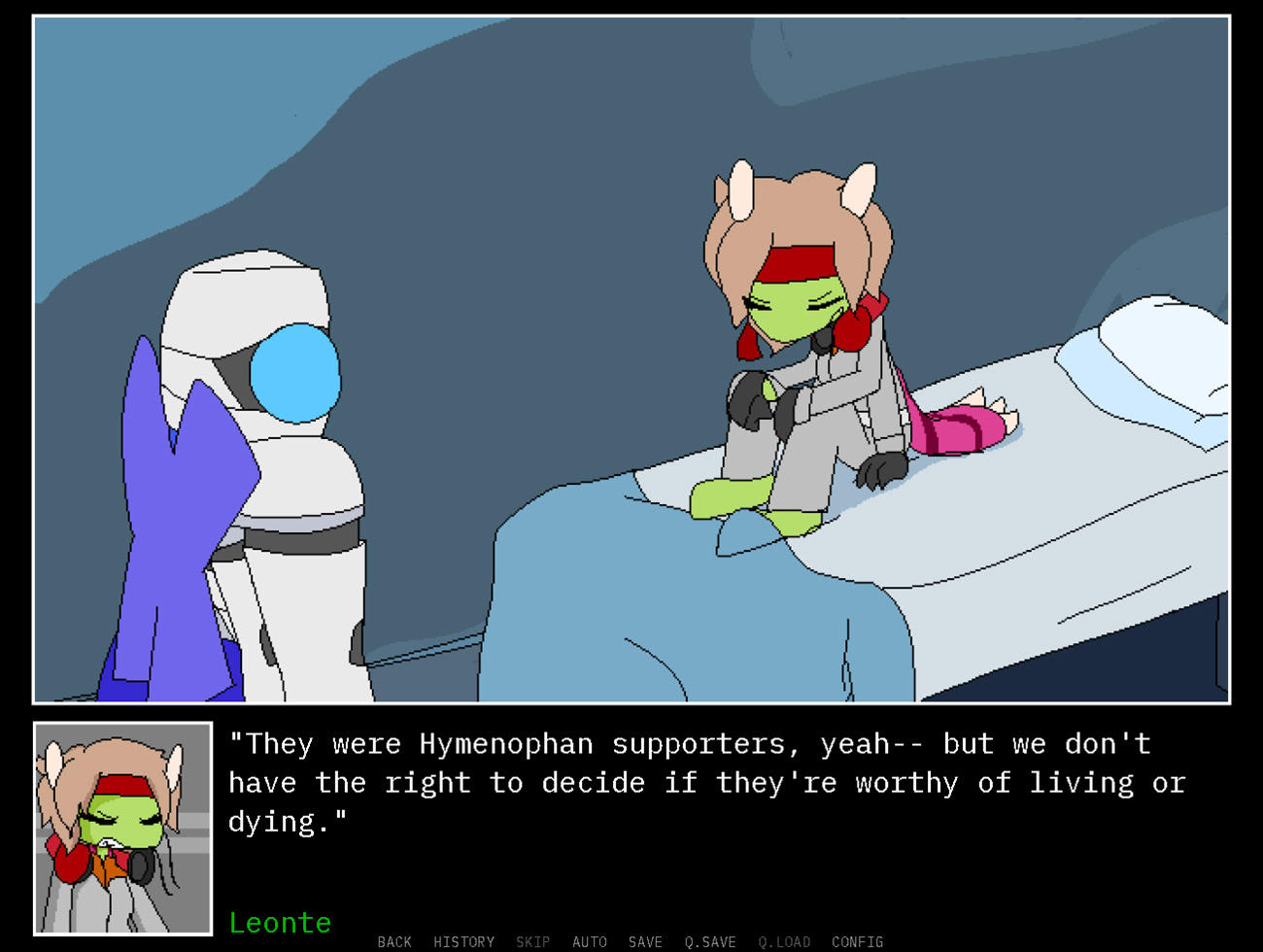 Set after the dramatic events of episode 16 of TENDER FRAME COCOON, //rhapsody of cross-pollination is a side story focusing on Deidamia Leonte as she crash-lands on a desert planet unknown to her... alongside Adrena Placata, the leader of the Hymenoph's elite cell known as "Keeper's Keepers." What will become of the two on this strange land?