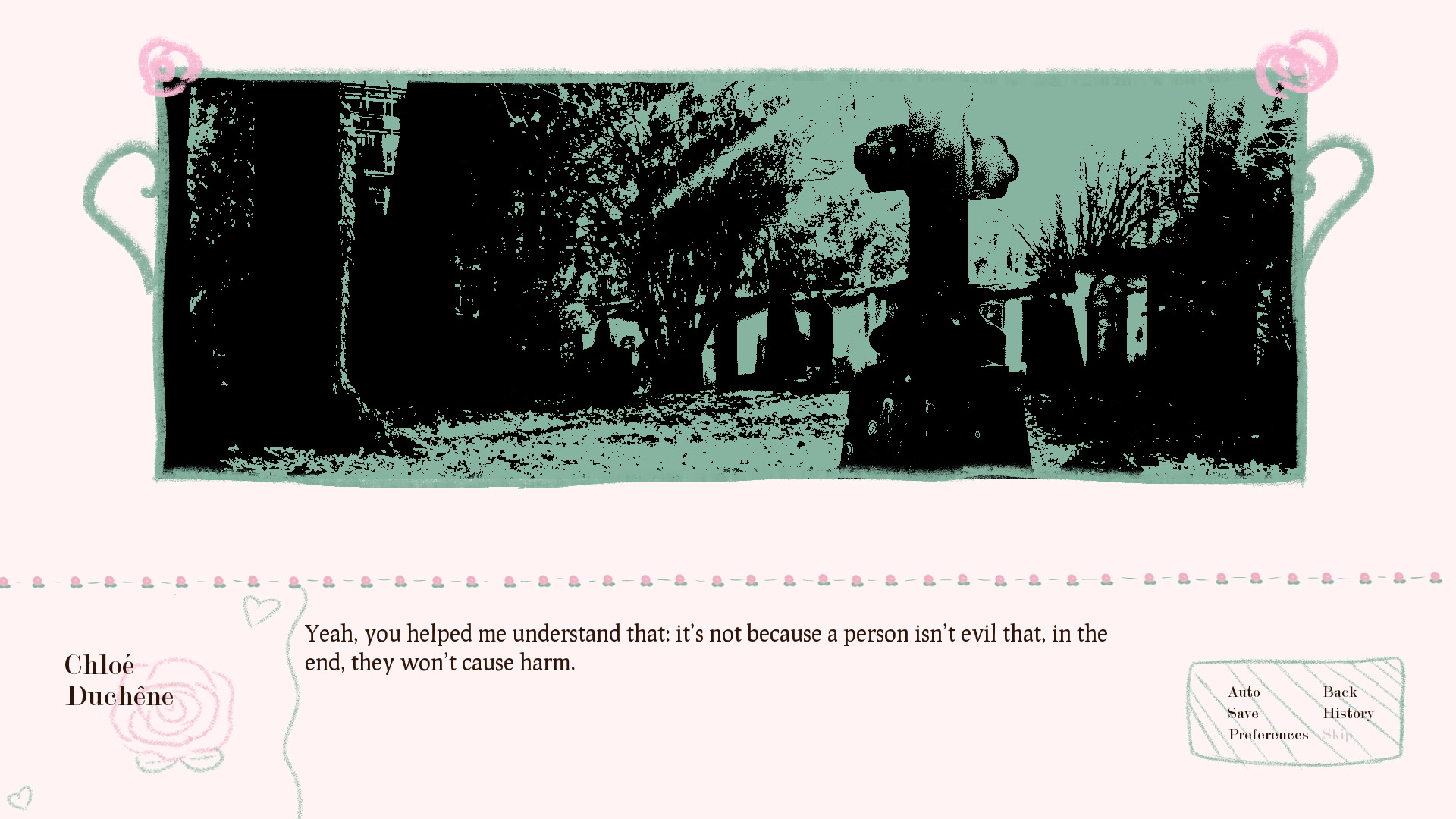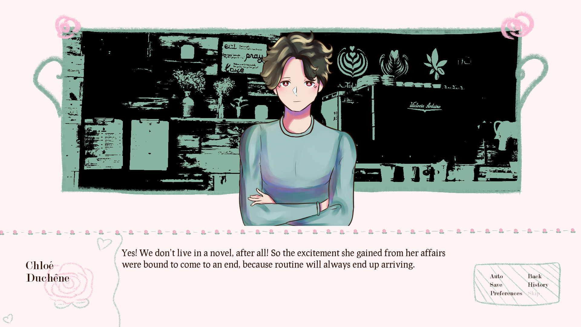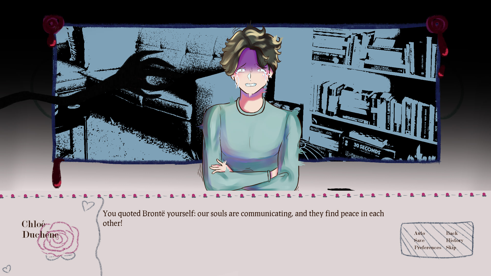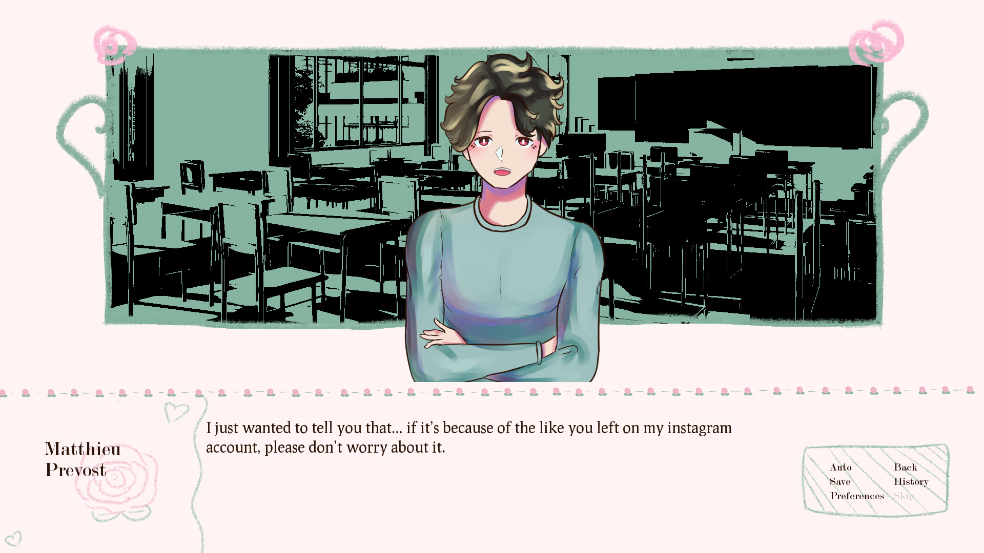 Chloé Duchêne had a very hard time in 10th grade: being the target of bullying, she was reduced in a state of helplessness and solitude. Fortunately, at the start of 11th grade, her literature teacher, Matthieu Prevost, notices and takes action to put a full stop to Chloé's harrassment. And it works! Chloé is finally able to live the rest of her highschool years in peace, all thanks to Mister Prevost's intervention.