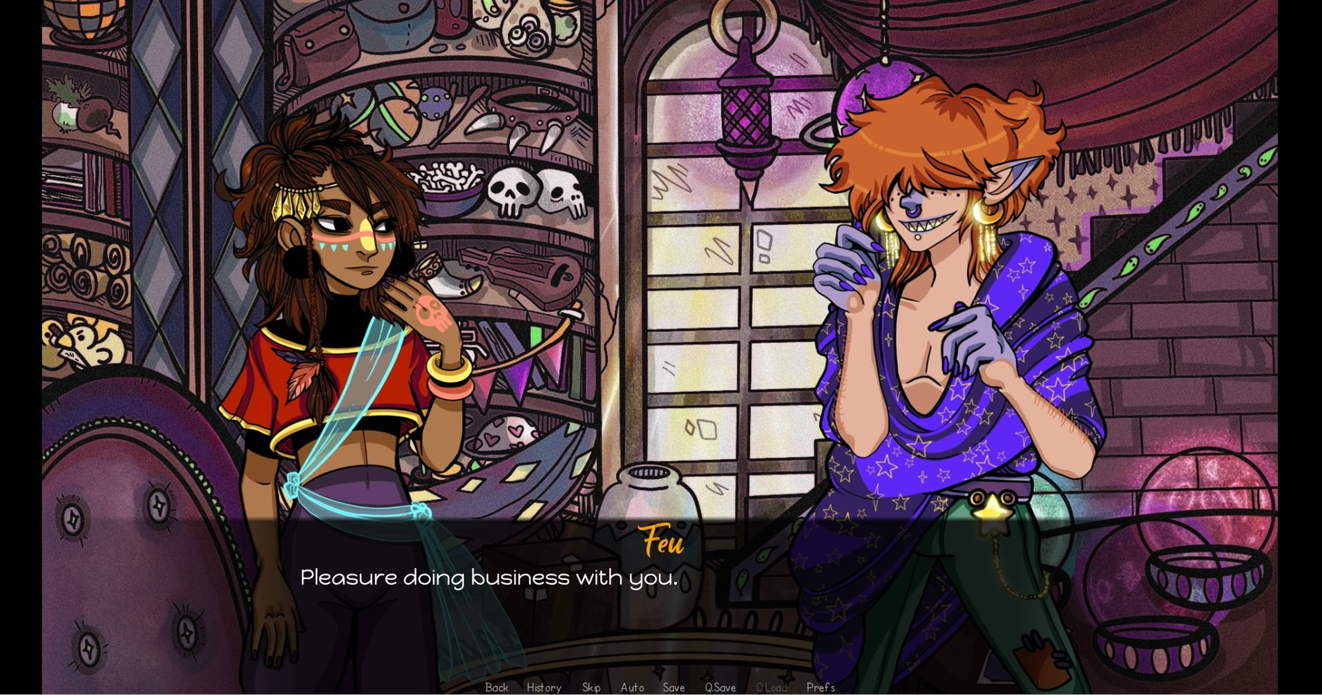 "Your name is 'Mora', owner of a magic item store. Your business has for the past few years been less than admirable. But today it will all change since you are meeting up with a travelling merchant called 'Feu'. He's trading you an item that is beyond your wildest dreams... For a small price of ...