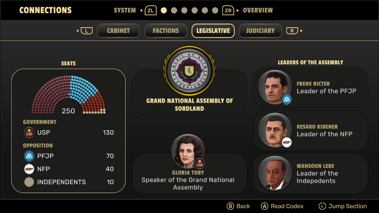 In 1954, the country of Sordland is emerging from a 20-year dictatorship, following a bloody civil war. You play as a charismatic young man, Anton Rayne, who has surprised everyone by rising to the top of the party in power and getting elected as the new President of Sordland.