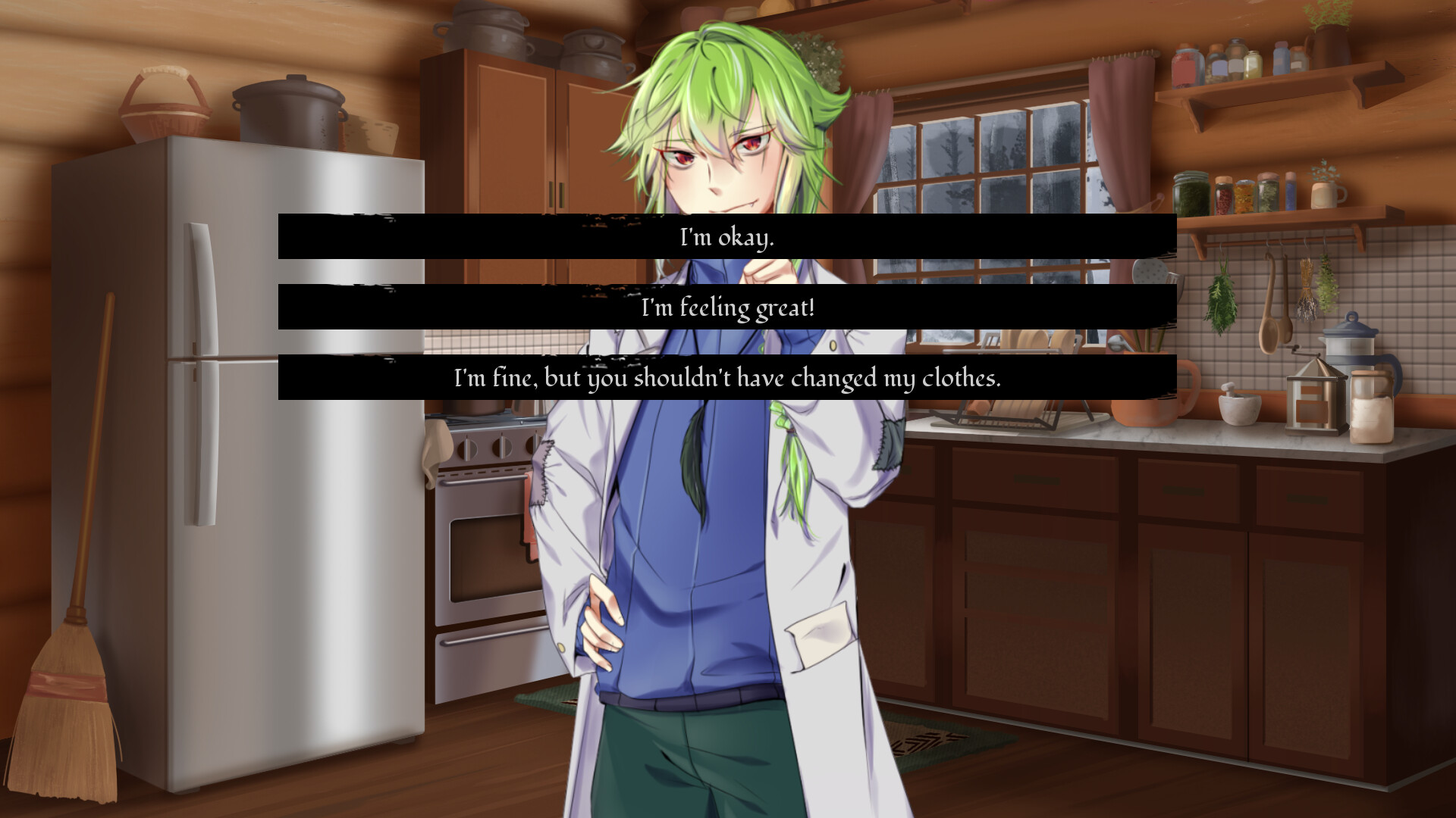 Needing a break from your usual routine, you decide to take a one-week holiday trip to Frostpeak, a town famous for its ski resorts. Unfortunately, on the way there, your car breaks down and you have no choice but to walk to the nearest place available... an isolated log cabin in the middle of the w...