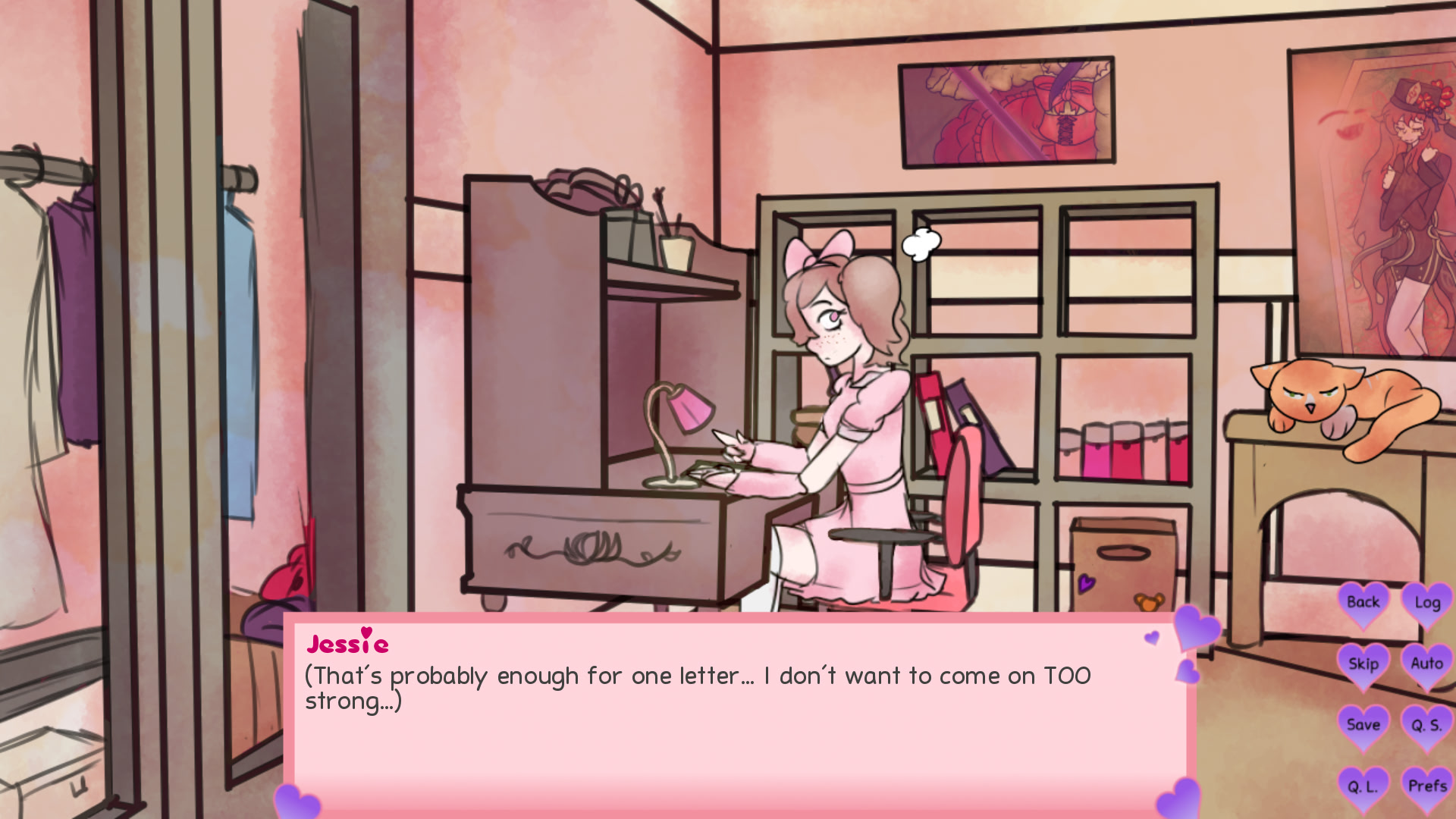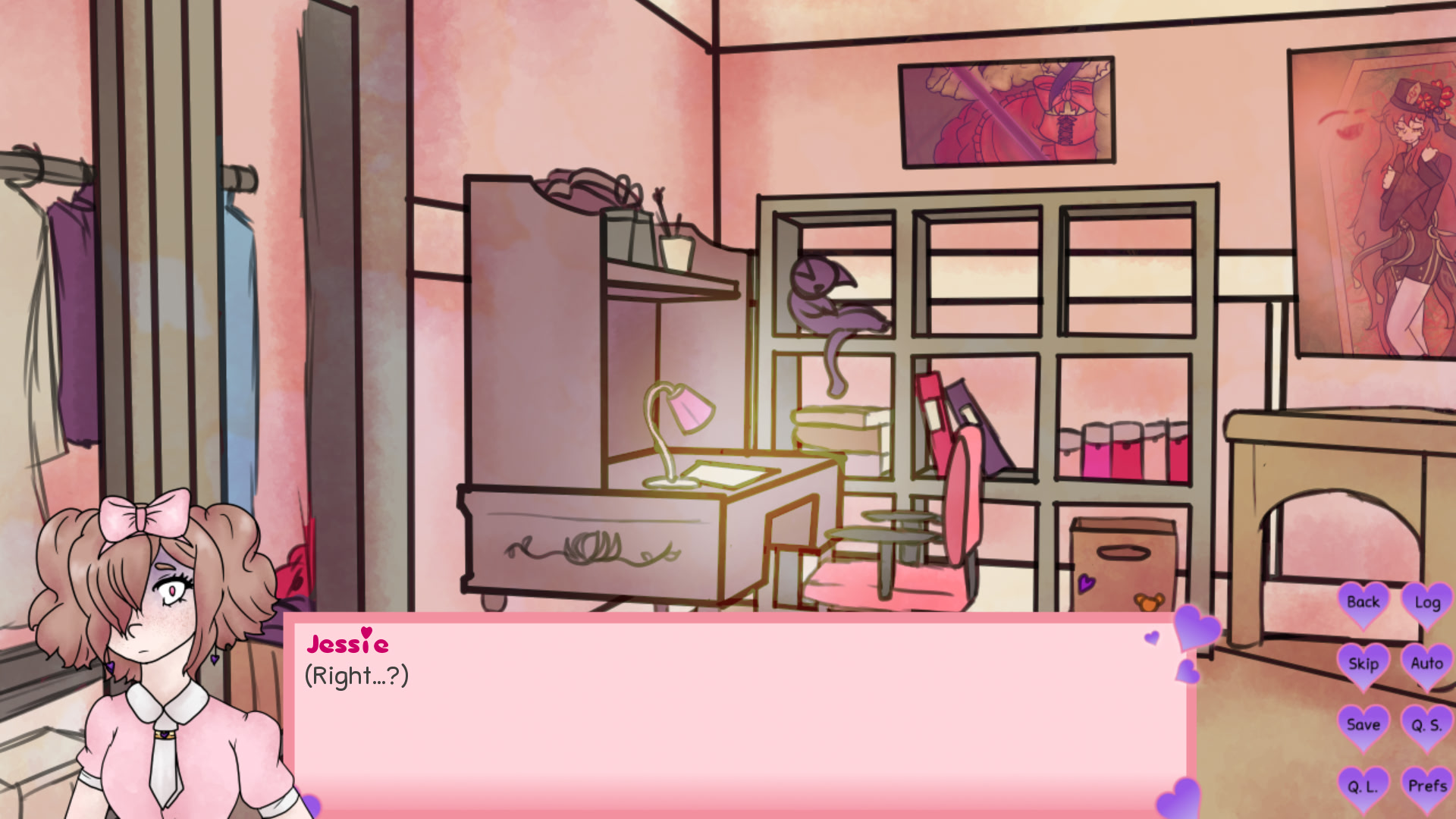 A short (7,000 words) yuri VN where you step into the shoes of Jessie Hall, a young adult who's developed an obsession on another girl who goes to her university. Will you be able to curb Jessie's obsession- And should you? itch.io]