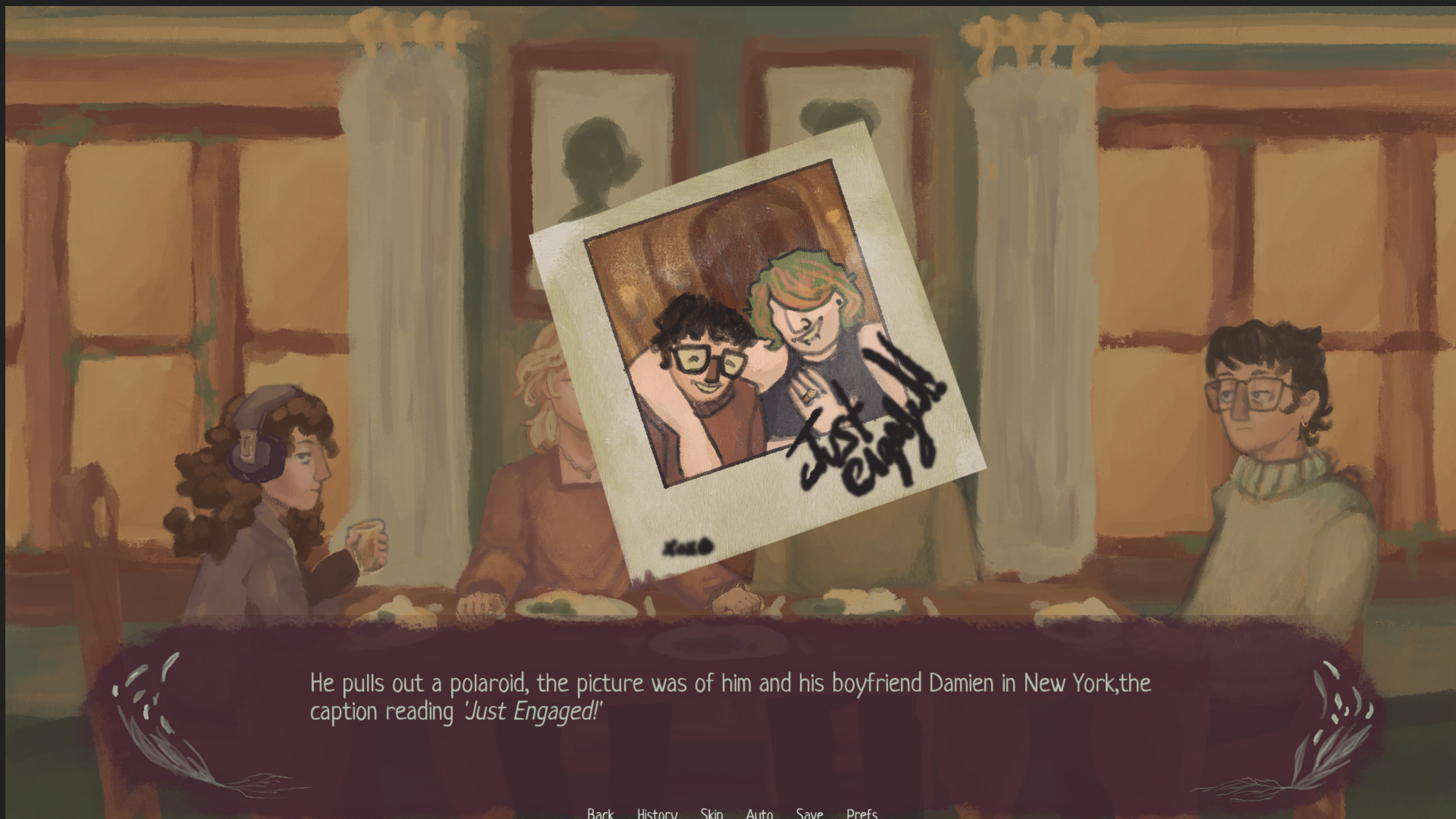 A Game About Coming Home. After a long flight , and a full semester of classes Dylan wants to come home and spend it relaxing. However they have forgotten the roots that they have escaped, will they forget the roots they had made? A simple dinner, the first one since they had left many months prio...