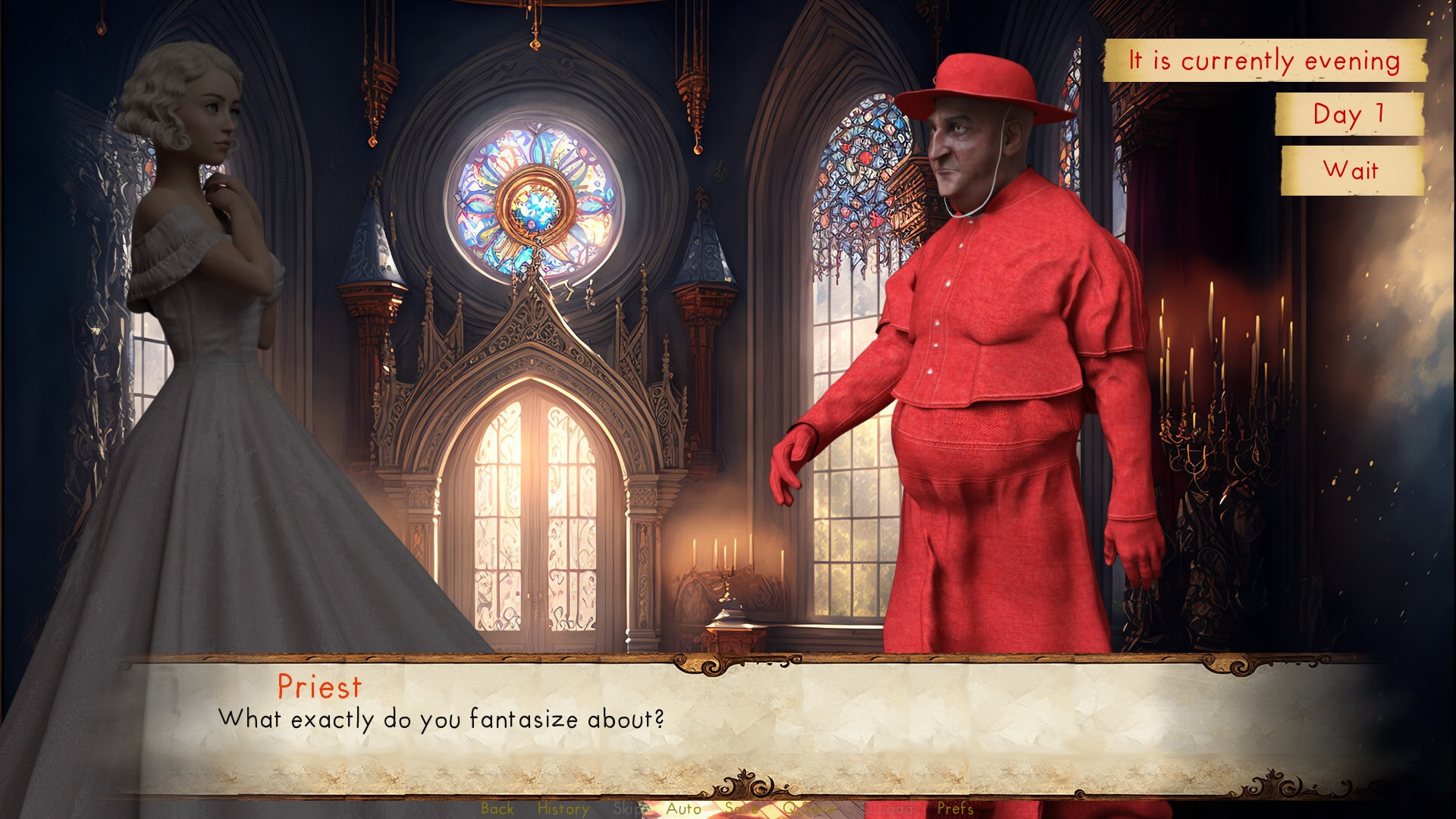 The story starts out in the typical way, but quickly becomes much more strange. At first you will be enjoying your daily life as a princess. However, a terrible curse has been cast upon you, and turned you into a futanari, growing a gigantic penis. This penis is no ordinary penis, it demands constant pleasure - no matter where or when. But being a princess you are forced to hide your newfound desires.