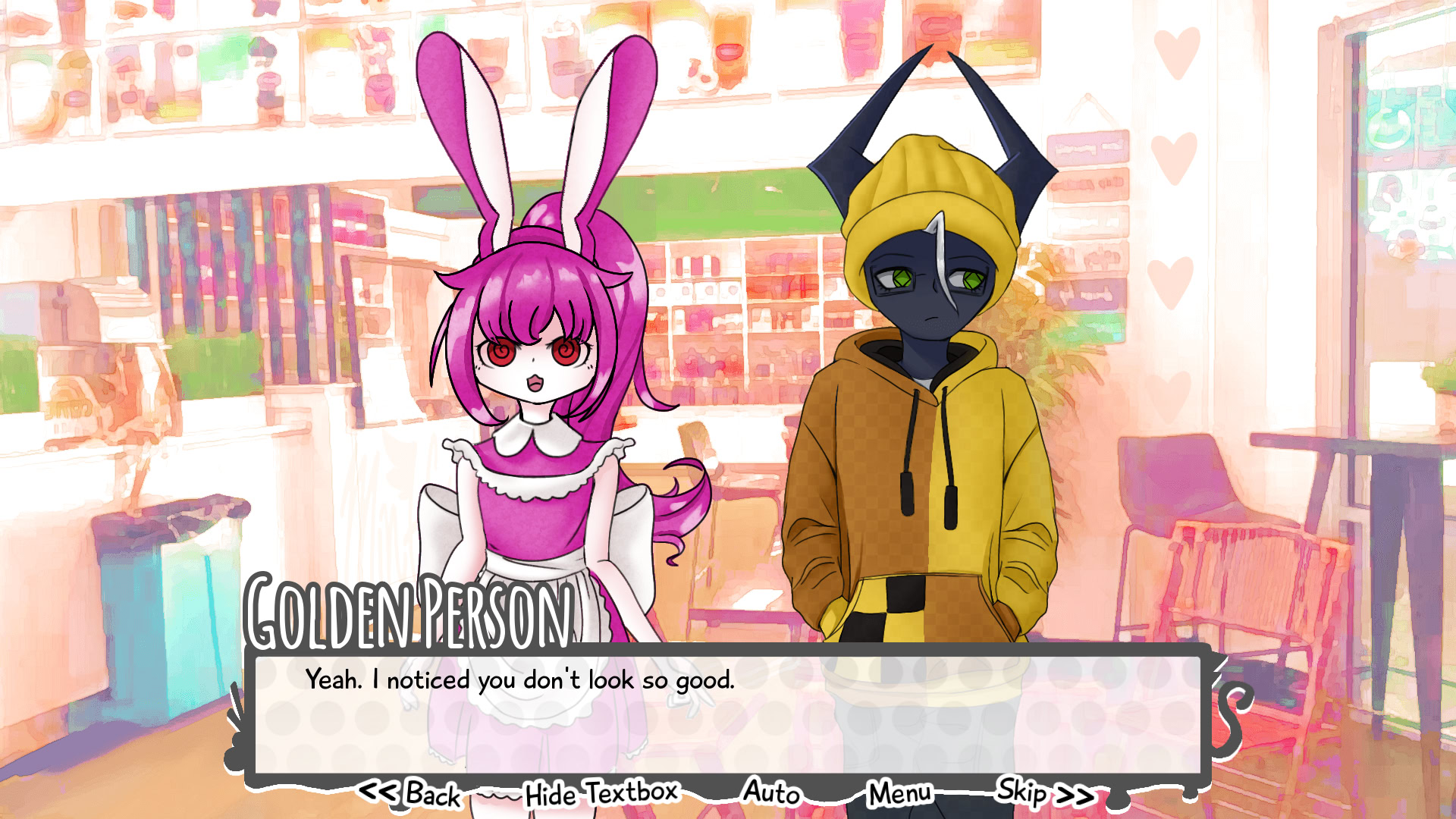 As Pippy the annoying cliché hyperenergetic rabbit, working at a maid cafe, at the age of 11, in a world where there is no more school, your goal is to make as many friends as you can (unless you don't want to, that is). Will Pippy get enough friends to be satisfied? Itch.io]