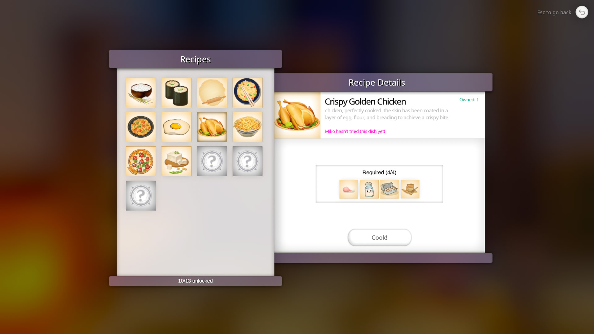 You are Raiden Ei. You don't know how to cook. At times like these, there's only one thing you can do: learn recipes, buy ingredients, cook dishes, and ask miko on a gay little dinner date.