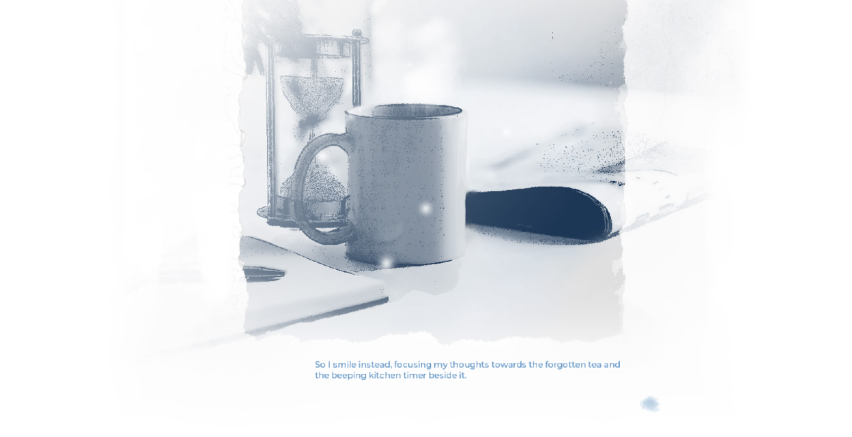 "Frosted in dust thick as white snow. My absence begins to yawn, our love grows a little too frail."