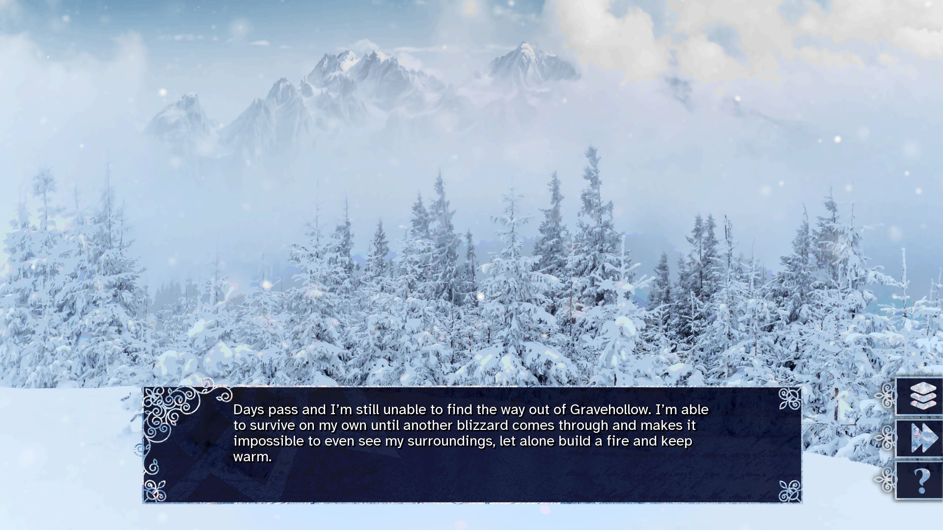 You're lost in the mysterious mountain range known as Gravehollow Peaks, notorious known as the place that no traveler has ever returned from and is cursed with eternal snow.