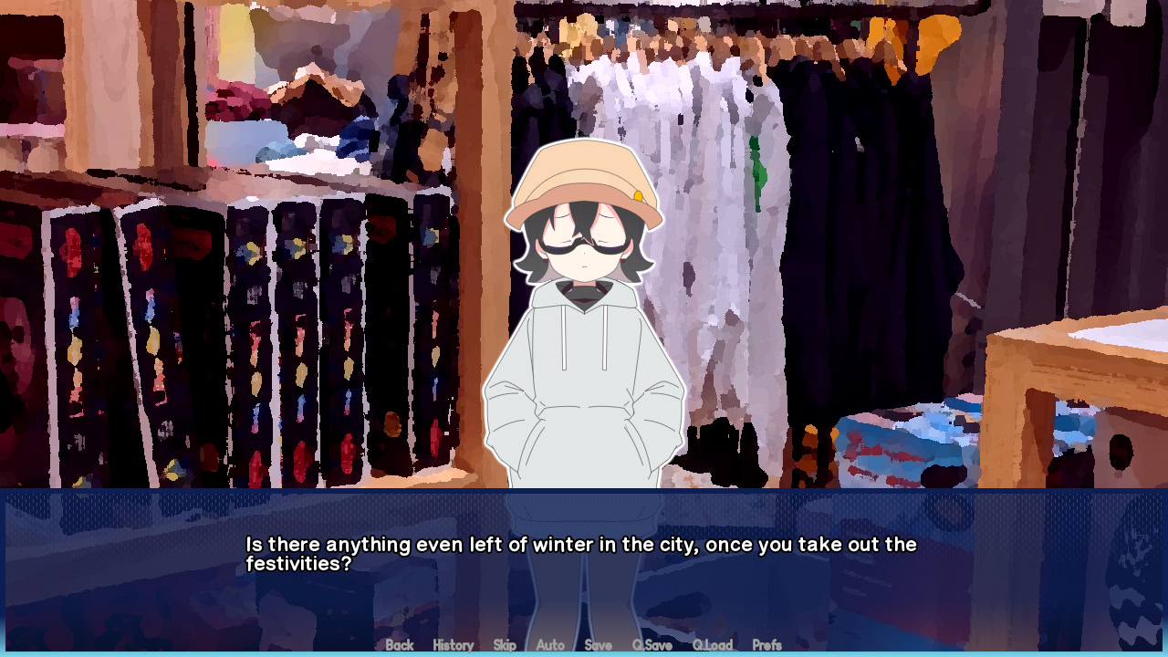 Two of Gifts is a short kinetic novel, musing about the nature of winter and the holiday season in the city.