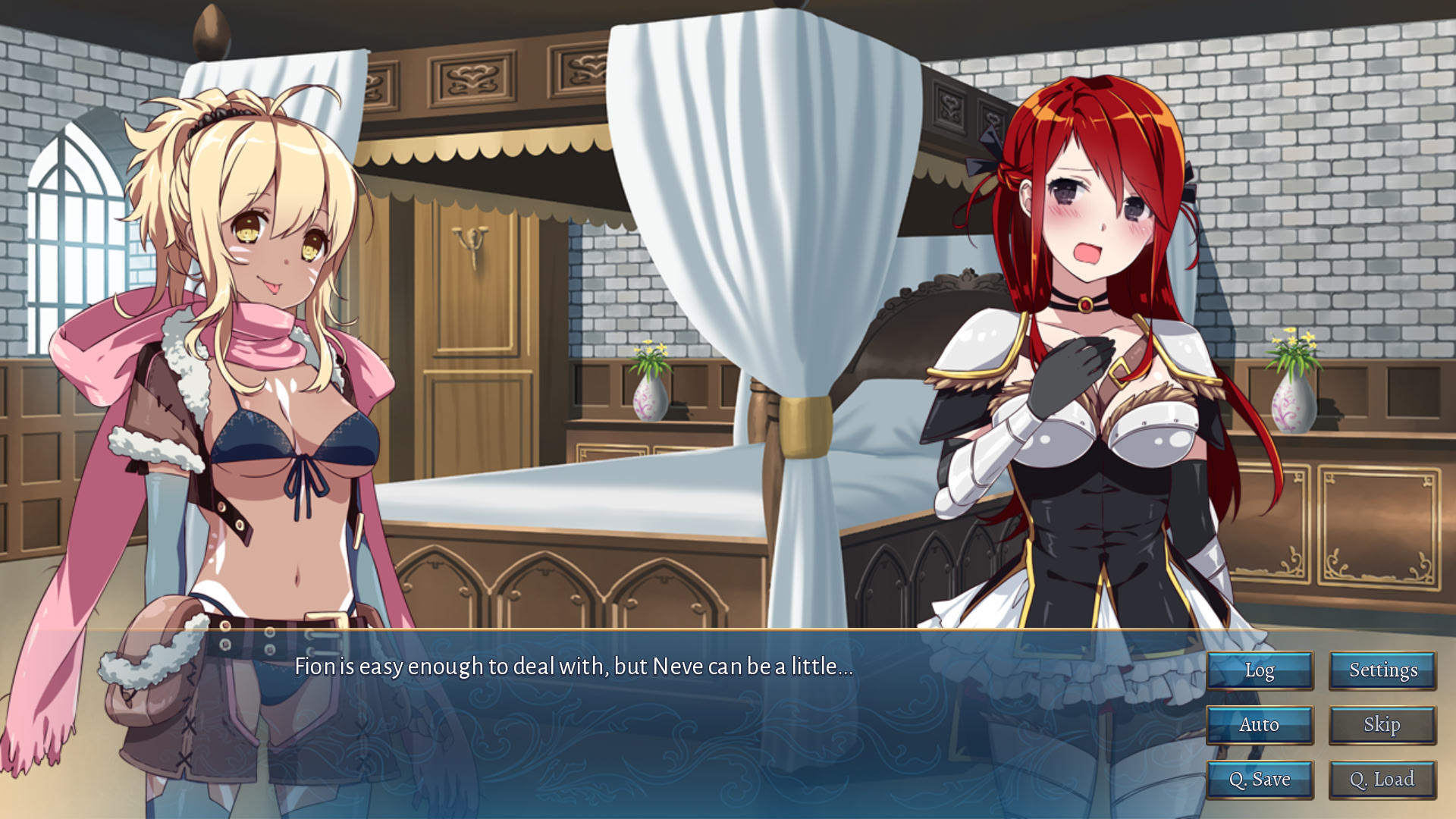 In Asaph, Viola recruits several cute girls to her party, including the devout maid Neve, the easygoing thief Fion, and the righteous knight Eleri. Together, Viola’s party explore Asaph, taking on quests and defeating monsters.
