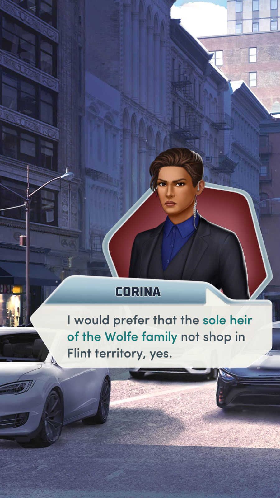 As the daughter of a powerful crime family, loyalty is everything. But when you fall for the heir of a rival family, you must fight for love and life. Choices Wikia]