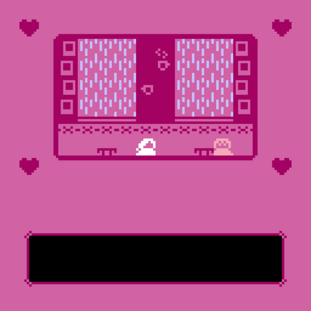 This tiny bitsy game / visual novel tells the story of Lydia and Ophelia - two lesbians that experience their first date in person, after they have been talking online for a while. The scene takes place in a tiny café, on a rainy day. Both characters are adults and above the age of 21.