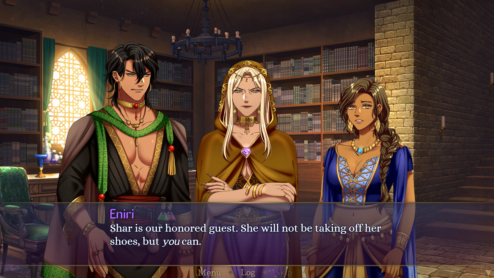 In this otome visual novel, you play as the young witch Shar, who was invited to live with a famous older witch. Shar's host needs protection from the demonic prisoners she keeps beneath her house. As Shar learns more of the house's secrets, she can build a relationship with her host's brother... or...