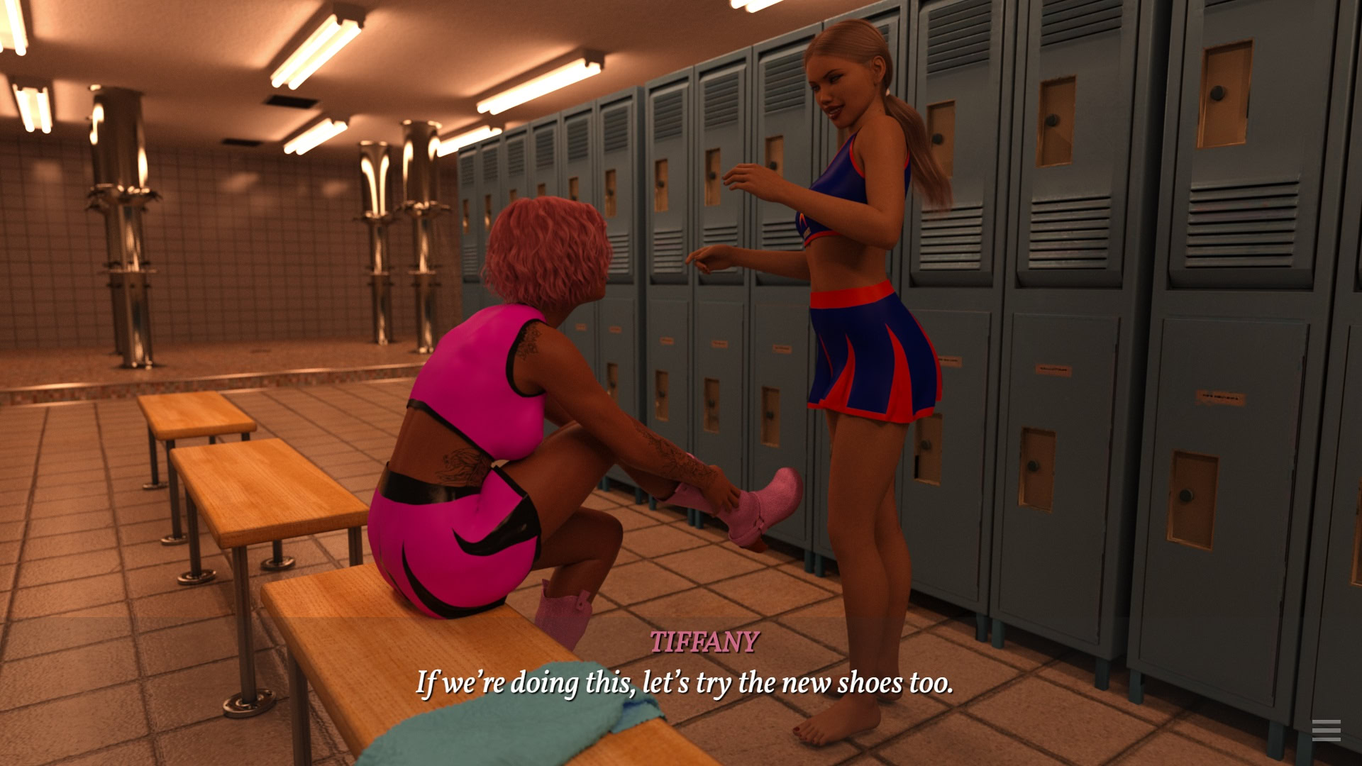 With exceptional looks and big personalities, Tiffany and Sabrina are cheerleaders for a popular football team. After a tiring day of jumps, tumbling and stunting the girls retire to the locker room to change. The two start fooling around, try on the new uniforms and take pictures, getting lost in...