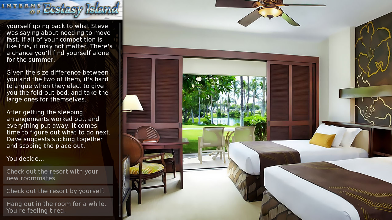 Welcome to the Isle de Extasis Resort! It’s a once in a life time opportunity on an island paradise. You may never leave…