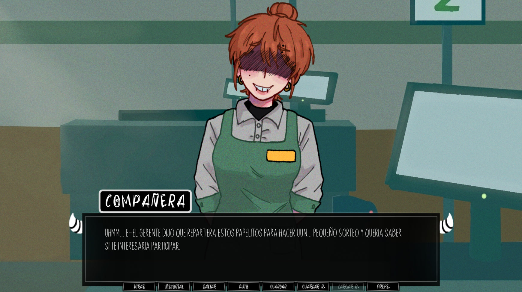 Your life as a cashier is a loop of monotony. Alone and restless, you seek change. Then a peculiar stranger, intrigued by you, appears outside work. Do you take the risk of getting closer?