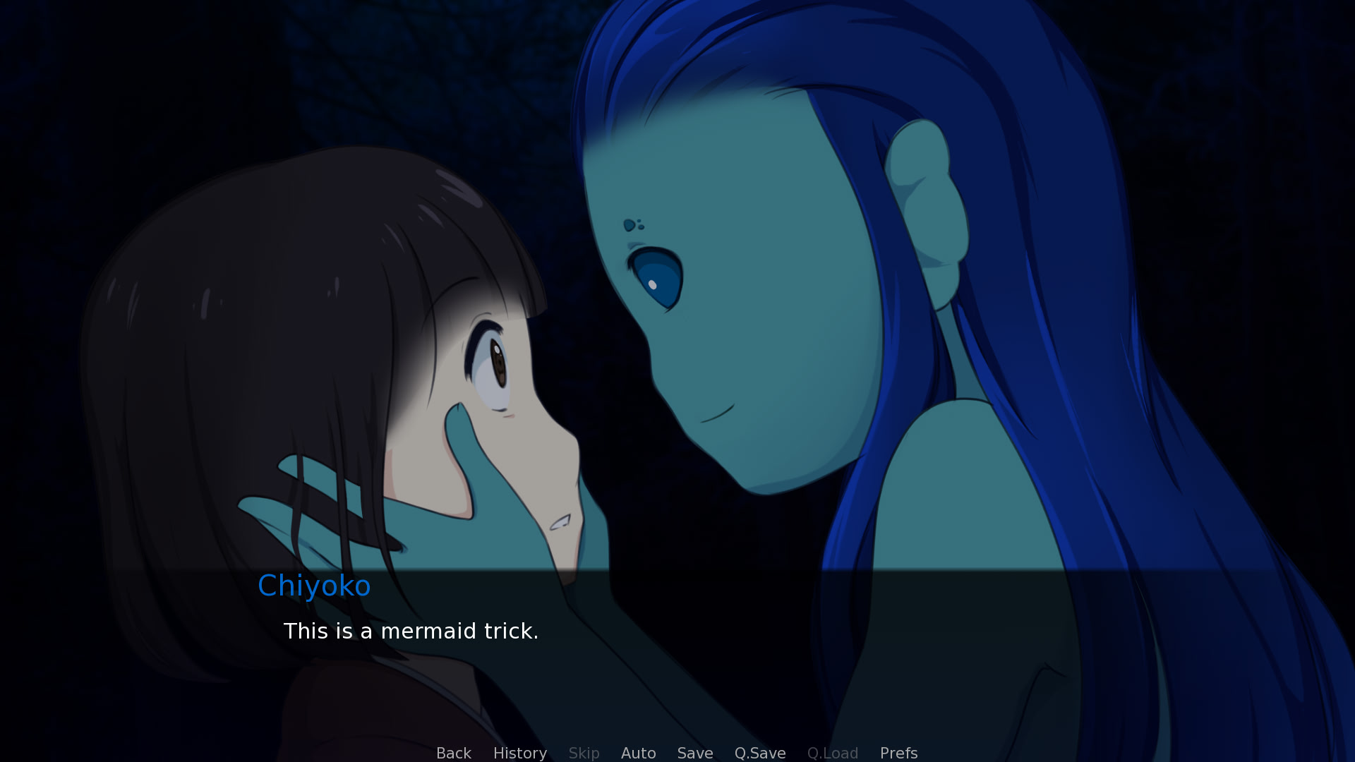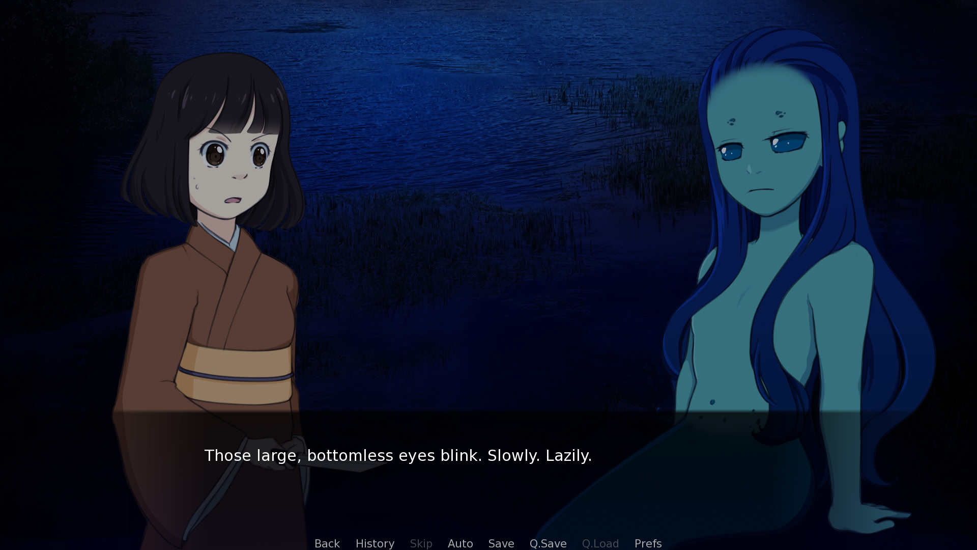 Chiyoko, a young maid, is sent to bring a piece of mermaid flesh for her employer, so he may live forever. She's not expecting a mermaid to actually leave the lake and speak to her. Depending on her choices, there's a lot she may not expect tonight... Itch.io]