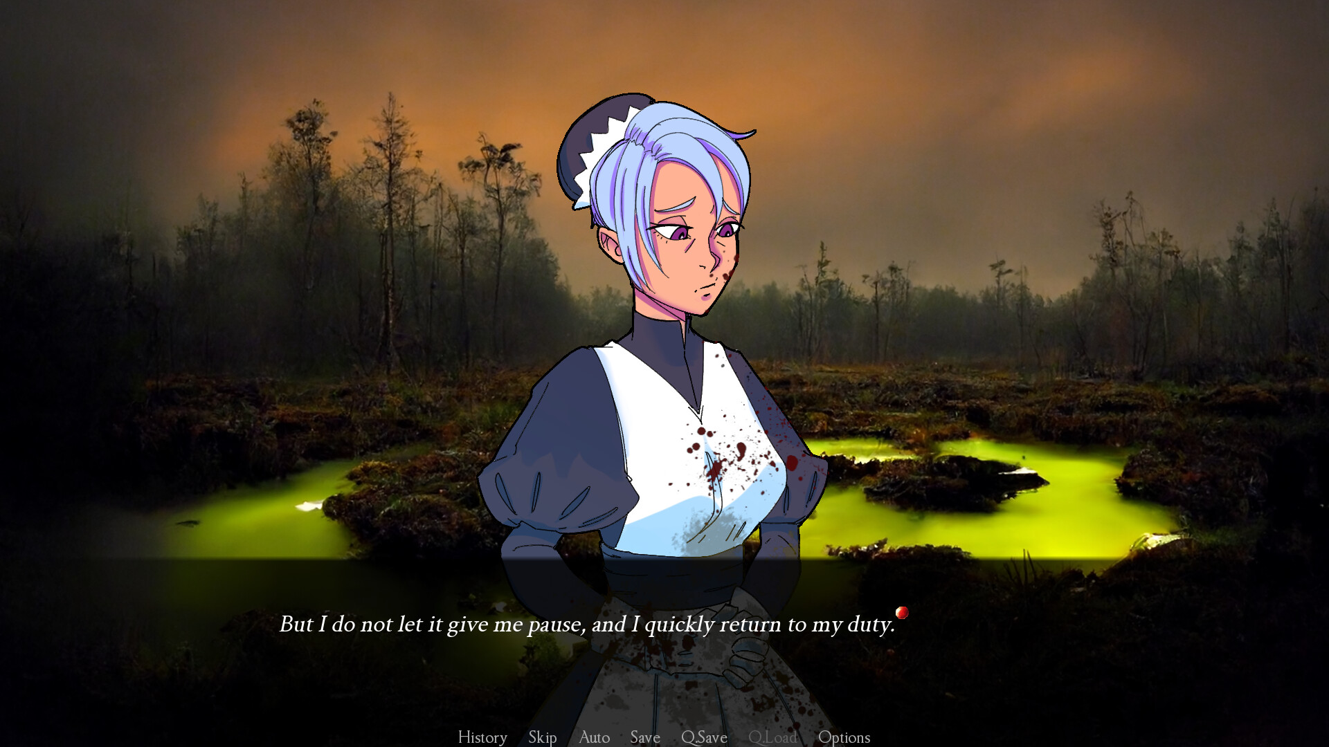You are a diligent maid in the employ of Miss Carmilla. One night, she gives you a job to do - clean up after a rather messy dinner. How far will you go to complete your task? Itch.io]