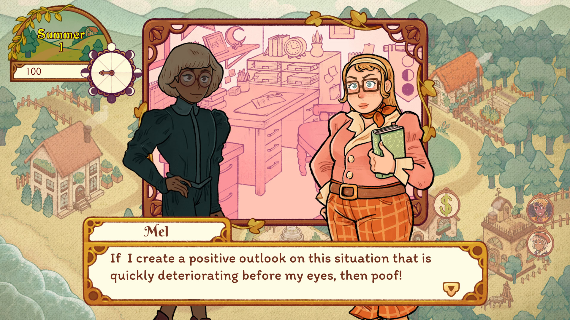 And so you arrive in the small village of Flora, along with your crow familiar, Ramsey. You have two weeks to help the locals prepare their harvest festival for success, and prove your worth to — well, everyone.