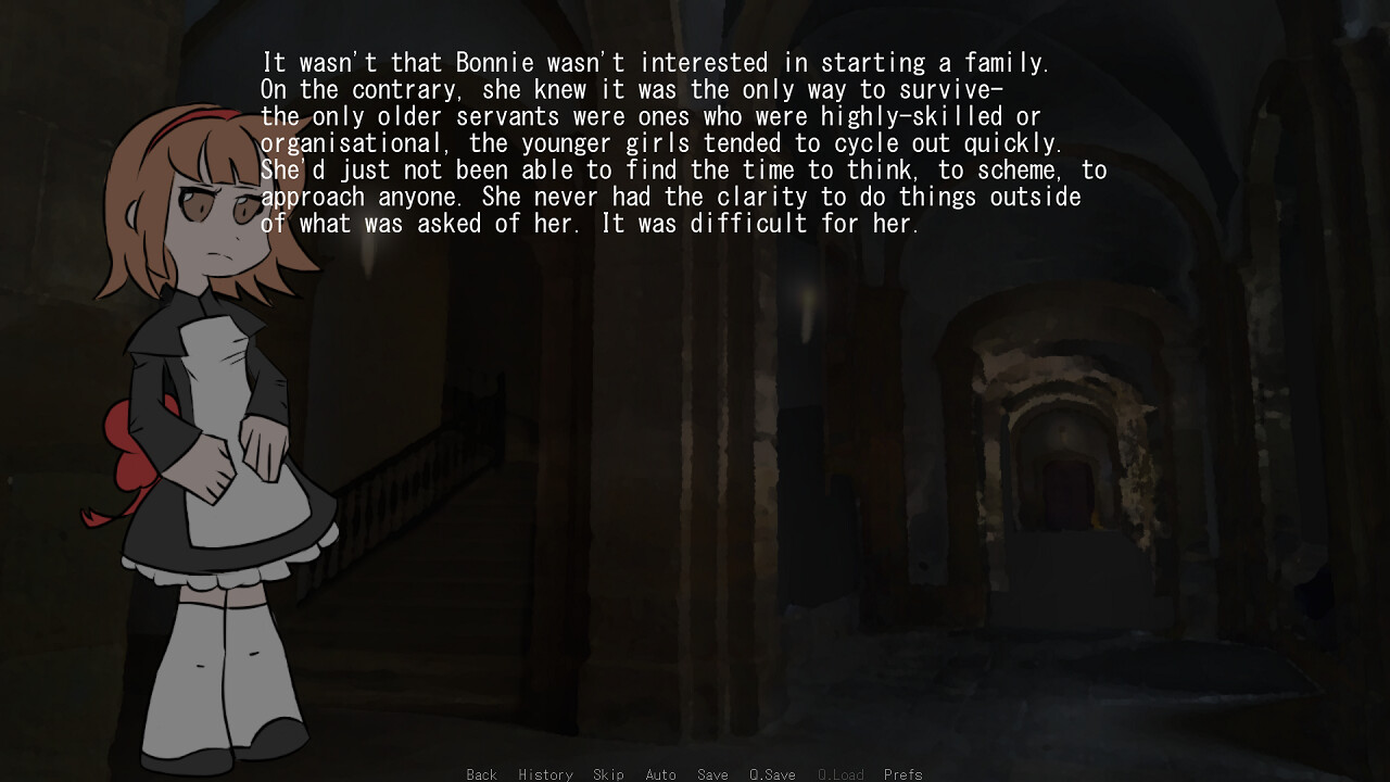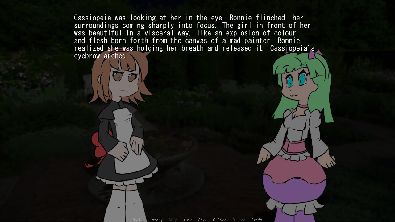 In a secluded mansion in the woods, a tired, overworked young maid named Bonnie finds herself alone with Cassiopeia, the daughter of the Lord of the mansion. Having spent her short life mindlessly working herself to the bone, Bonnie is suddenly thrust into Cassiopeia's schemes, and as things at the mansion take a turn of the worse, can she find happiness with the girl of her dreams?