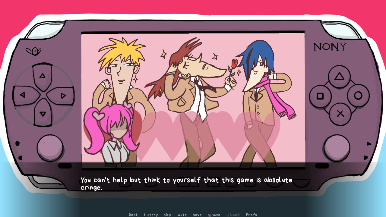 Your friend recommends you to play a dating sim that she's been obsessed with lately. After playing it, you reflect on your life and realize that you wish you could live your life as the main heroine of a dating sim.