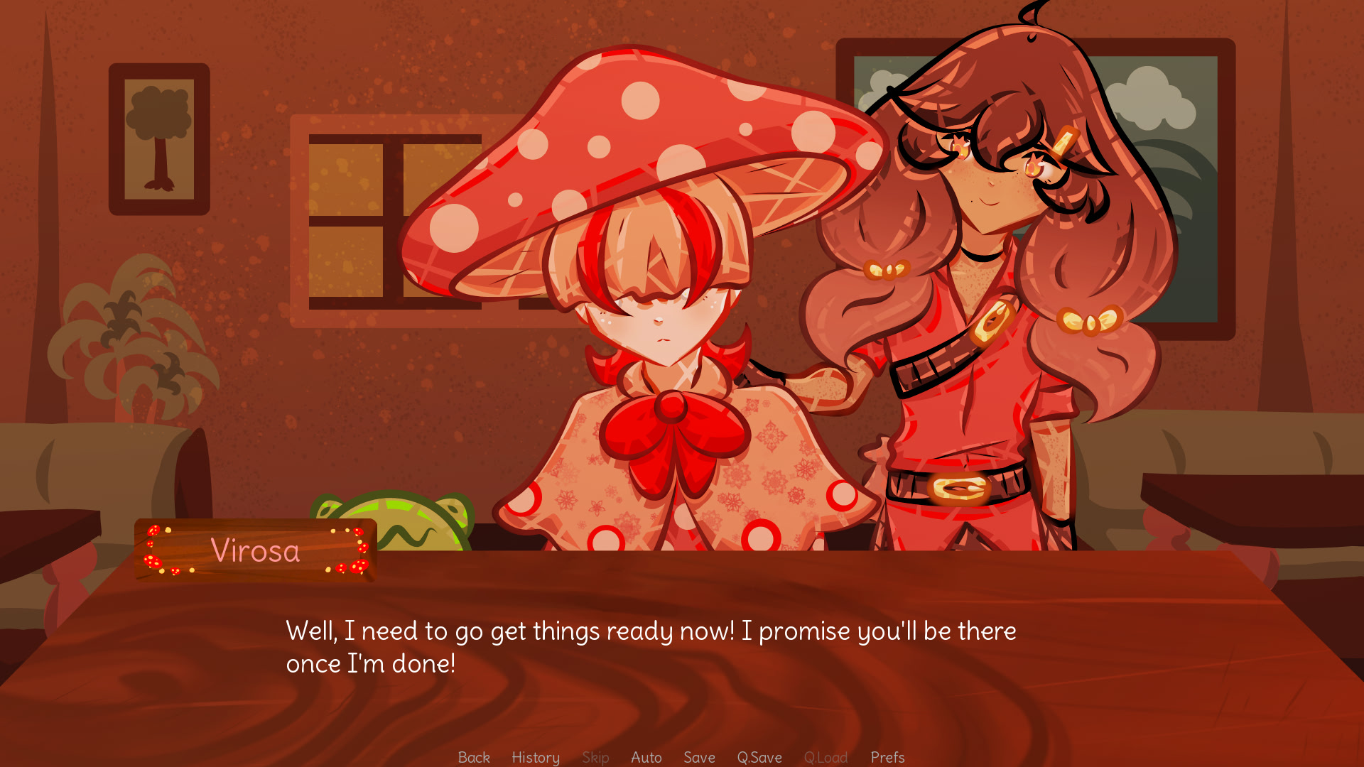 After saving Amanita, the kingdom stages a grand festival – mostly coincidental, but she gets to take the credit. You, her favorite shopkeeper who kept her stocked through it all, are invited to dine with her afterward. Itch.io]