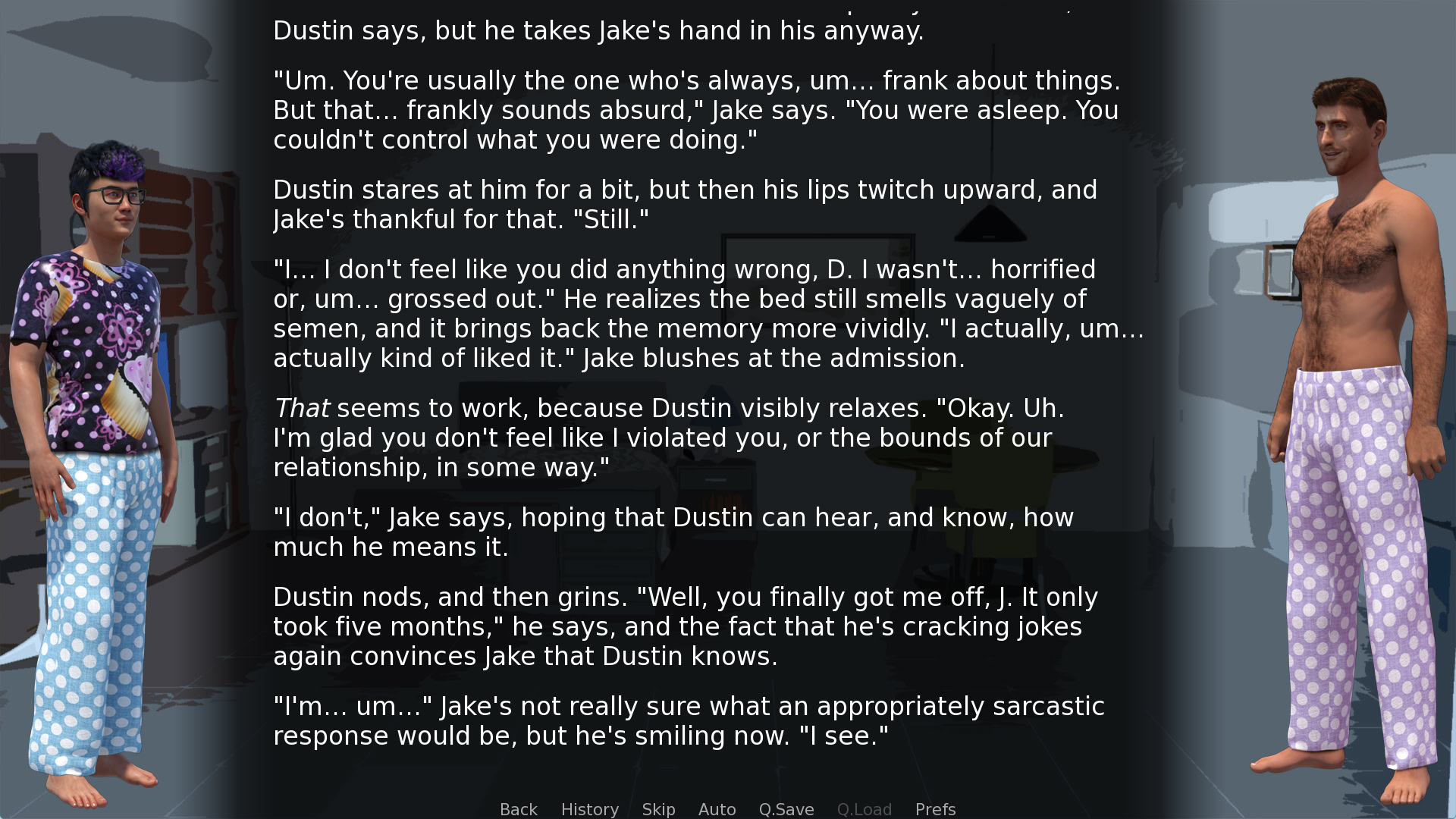 AAGS: Down To Fun (ADTF) is a fictional, contemporary, slice-of-life series of stories set in the YAGS universe, following a gay man's journey of finding love and coming to terms with his asexuality. No prior knowledge of YAGS is necessary to enjoy the series, although it does contain spoilers for works in the YAGS series of games and writing.