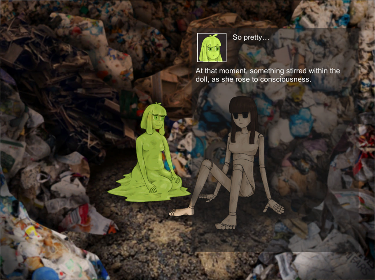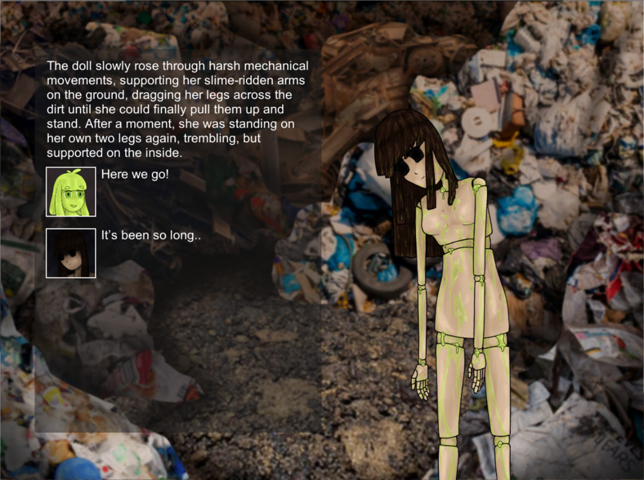 A doll sits alone in a far-off wasteland pit. For the first time someone finds her in this entropized limbo. Itch.io]