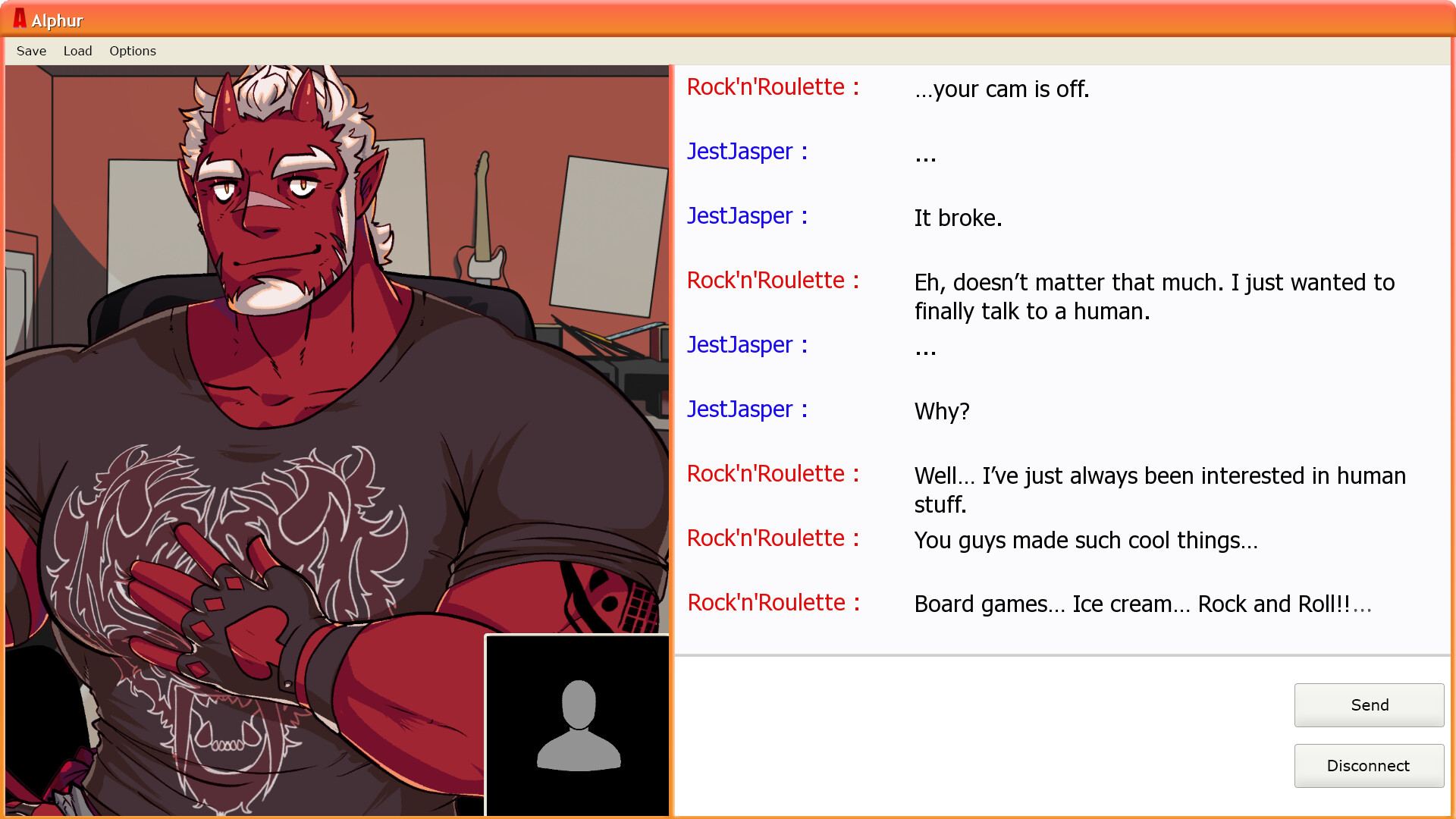 Strange Screentime : Alphur is a very short Visual Novel about the small conversations we can have with strangers that you didn't know they needed. You download an old anonymous chat program called 'Alphur'. Going through various topics and meeting other people, or sometimes no one even connects. ...